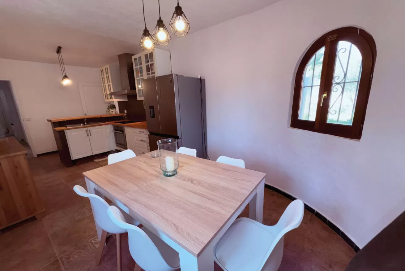 La villa dispone di quattro camere da letto, due soggiorni (di cui uno con cucina completamente attrezzata), due bagni e una piacevole zona pranzo, ideale per condividere colazioni lente, pranzi in compagnia e cene rilassate.