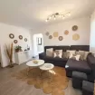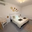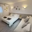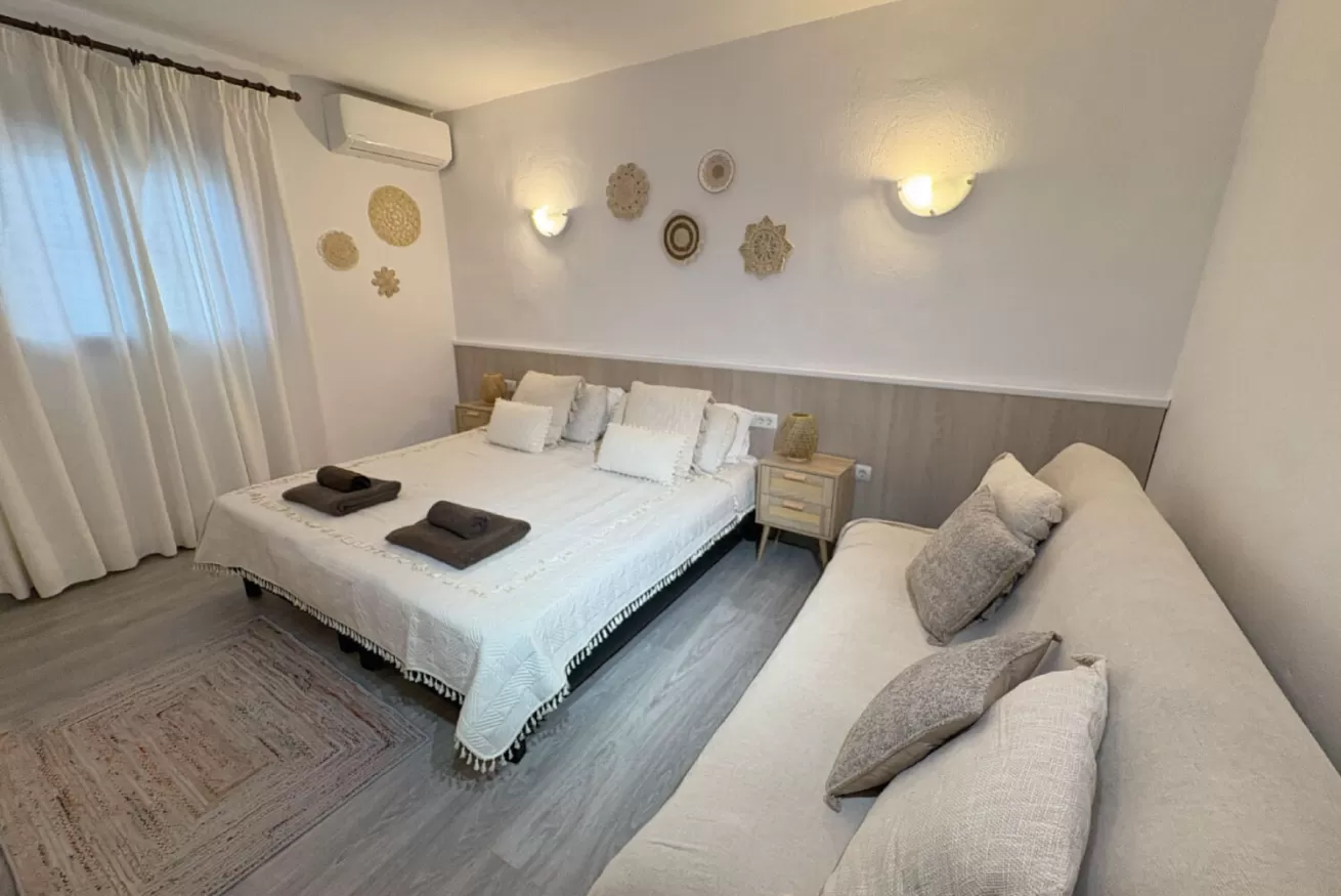 Cana Romina può ospitare fino a 11 persone, esclusivamente nel caso di famiglie o gruppi con estrema confidenza, poiché la sistemazione dei posti letto è distribuita in modo eccezionale tra camere e divani letto. Le camere da letto sono quattro, tre matrimoniali e una tripla resa possibile grazie alla presenza di un divano letto all’interno di una delle camere, come visibile nelle foto. Inoltre, nel soggiorno è presente un ulteriore divano letto, utile per completare la capienza totale.