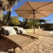All’esterno, Finca Larissa rivela tutta la sua anima mediterranea. La piscina, perfettamente integrata nel paesaggio, invita a momenti di contemplazione e relax, tra bagni all’alba e pomeriggi assolati. Le aree dedicate alla convivialità e al riposo si susseguono con naturalezza: spazi per cene sotto le stelle, angoli chill-out ideali per leggere o meditare e persino una palestra all’aperto che permette di allenarsi immersi nella natura, respirando libertà.