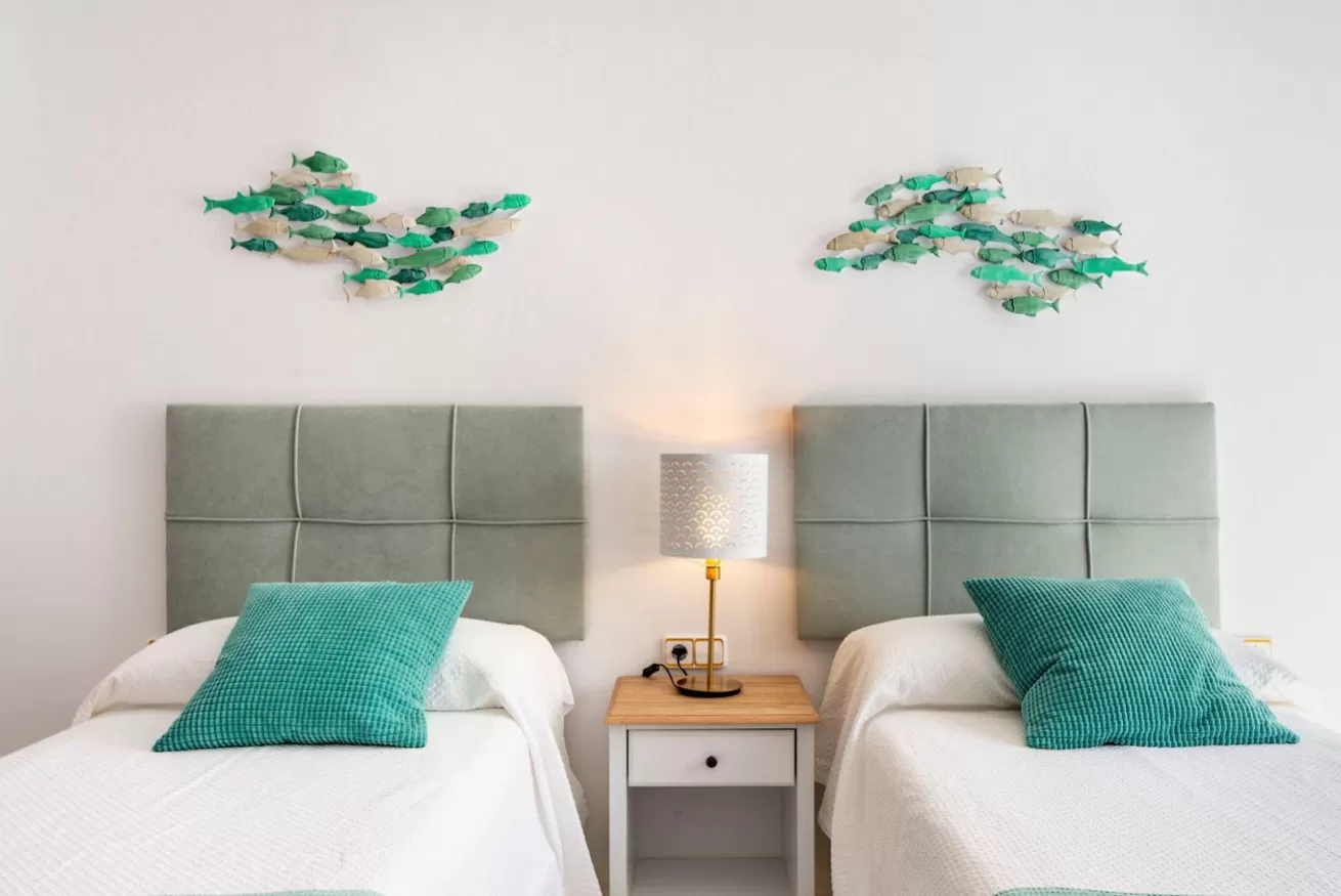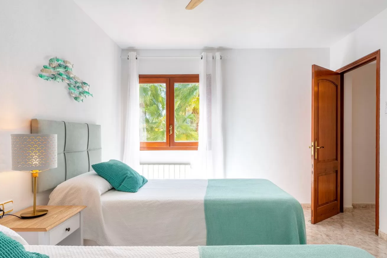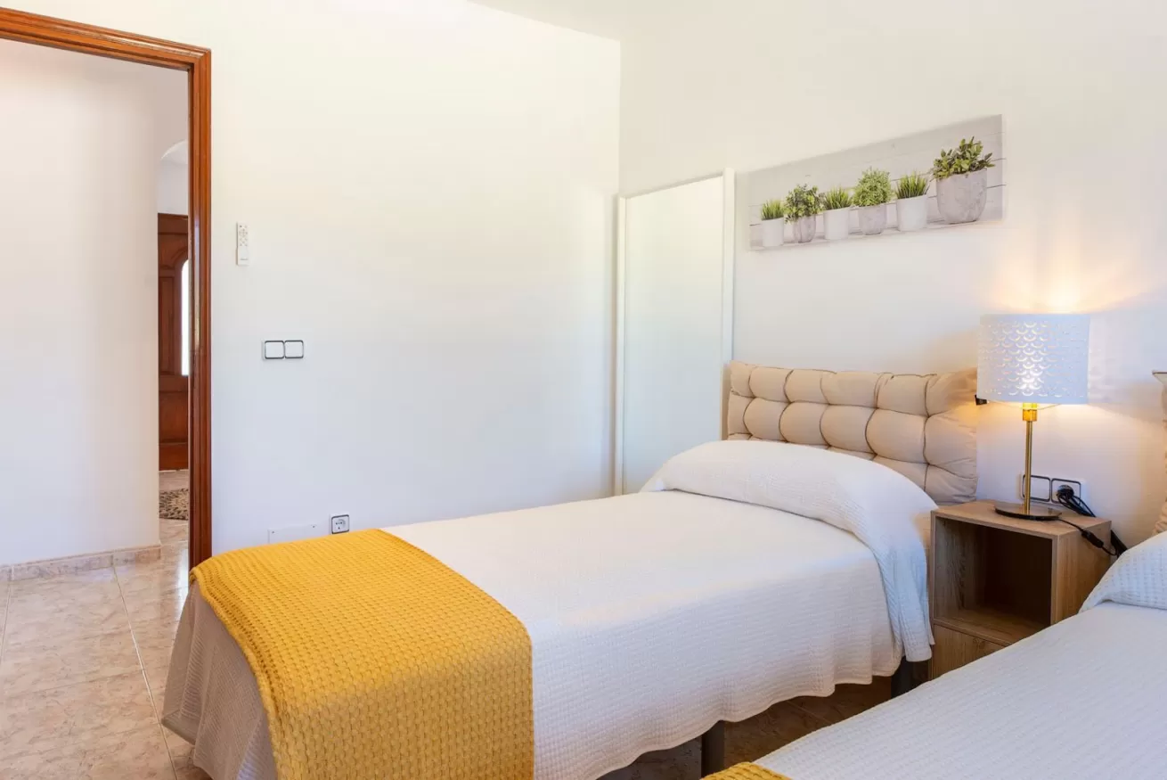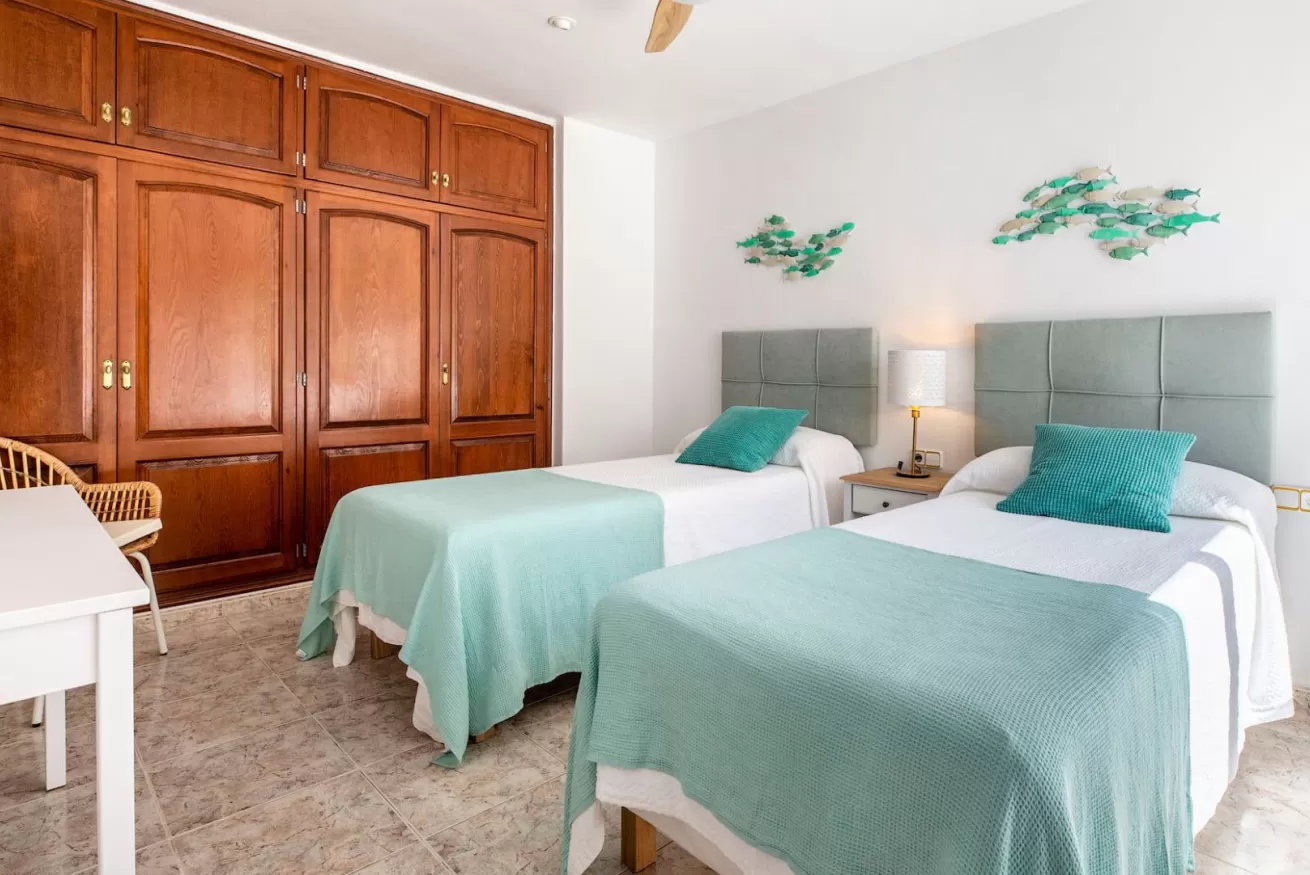 Le altre due camere da letto hanno due letti singoli ciascuna, armadi a muro e ventilatori a soffitto per rinfrescare la stanza durante i giorni più caldi dell'estate.