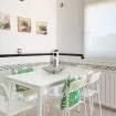 La cucina è completamente attrezzata con tutte le stoviglie e gli elettrodomestici necessari; ha accesso diretto all'area barbecue e al cortile.