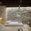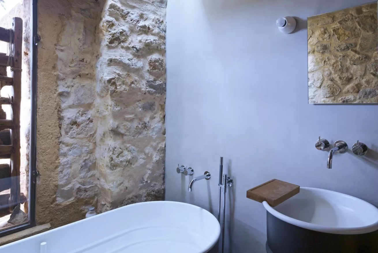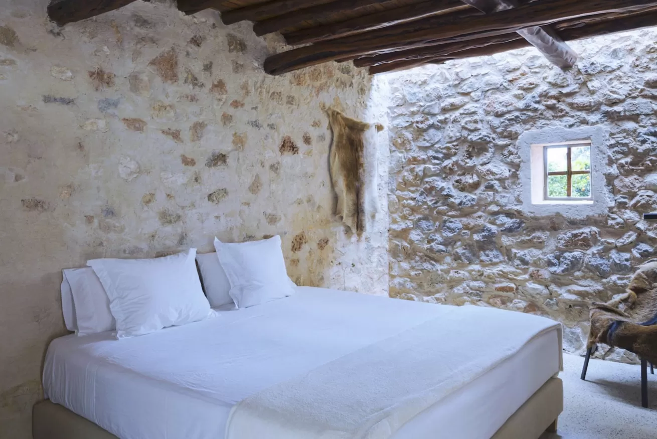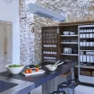 Il soggiorno, elegante e accogliente, si affaccia su un'altra terrazza coperta, immersa in un giardino che pare danzare al ritmo della brezza. Le quattro suite, climatizzate per garantire il massimo comfort, sono un tripudio di tradizione, con soffitti in legno, pareti in pietra e arredi di lusso.