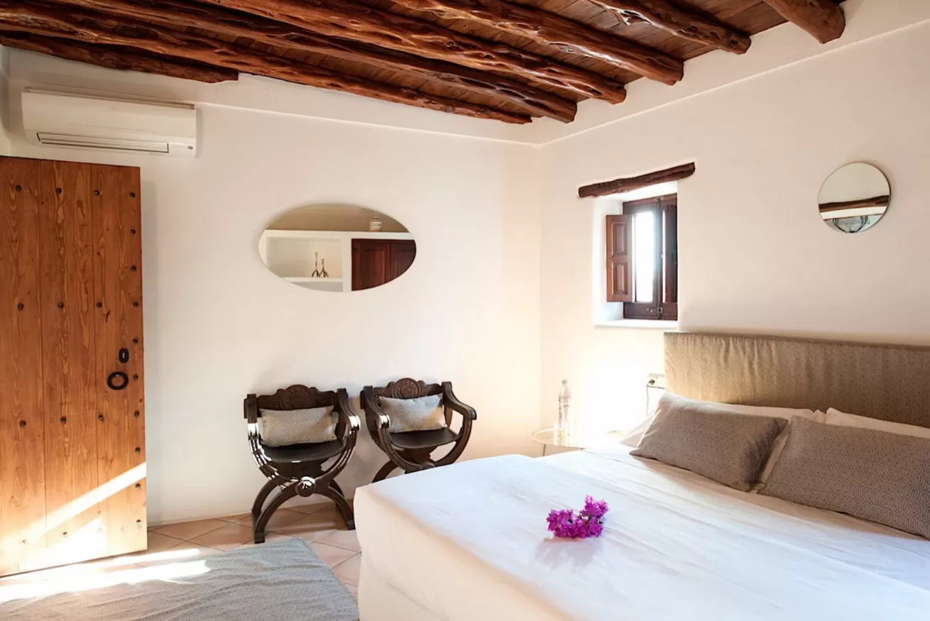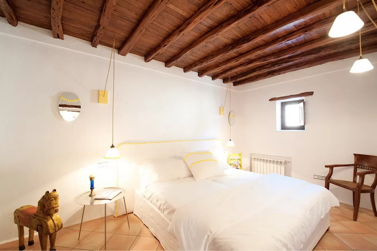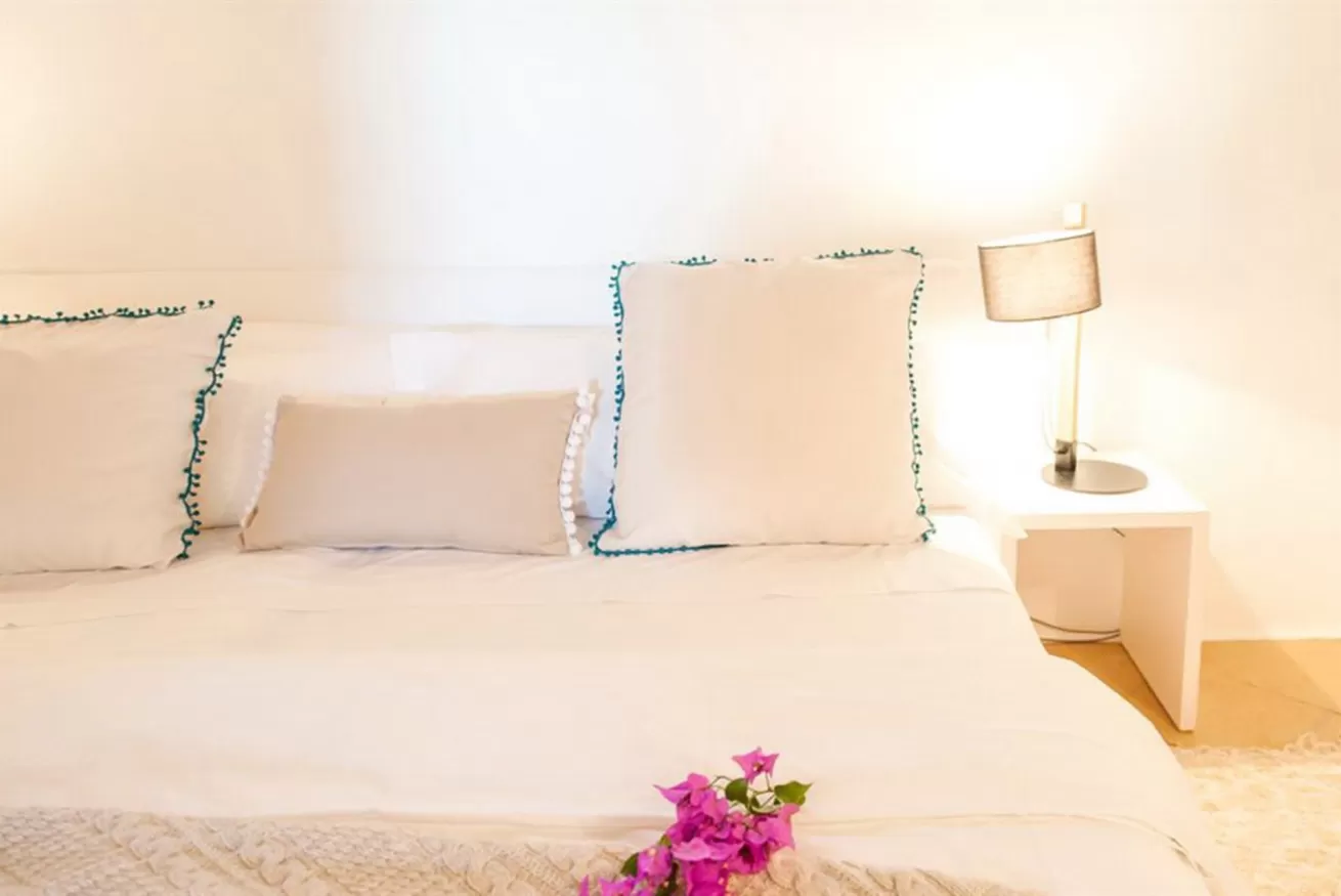 Dopo un lungo pranzo, il tempo si distende tra le acque riflettenti della piscina e i lettini baciati dal sole. Al mattino, un'invitante passeggiata tra gli ulivi, i limoni e gli aranci circostanti offre una vista incantevole e l'occasione di respirare l'aria fresca, permeata dai profumi degli alberi secolari che abbracciano questa autentica anima di Ibiza.