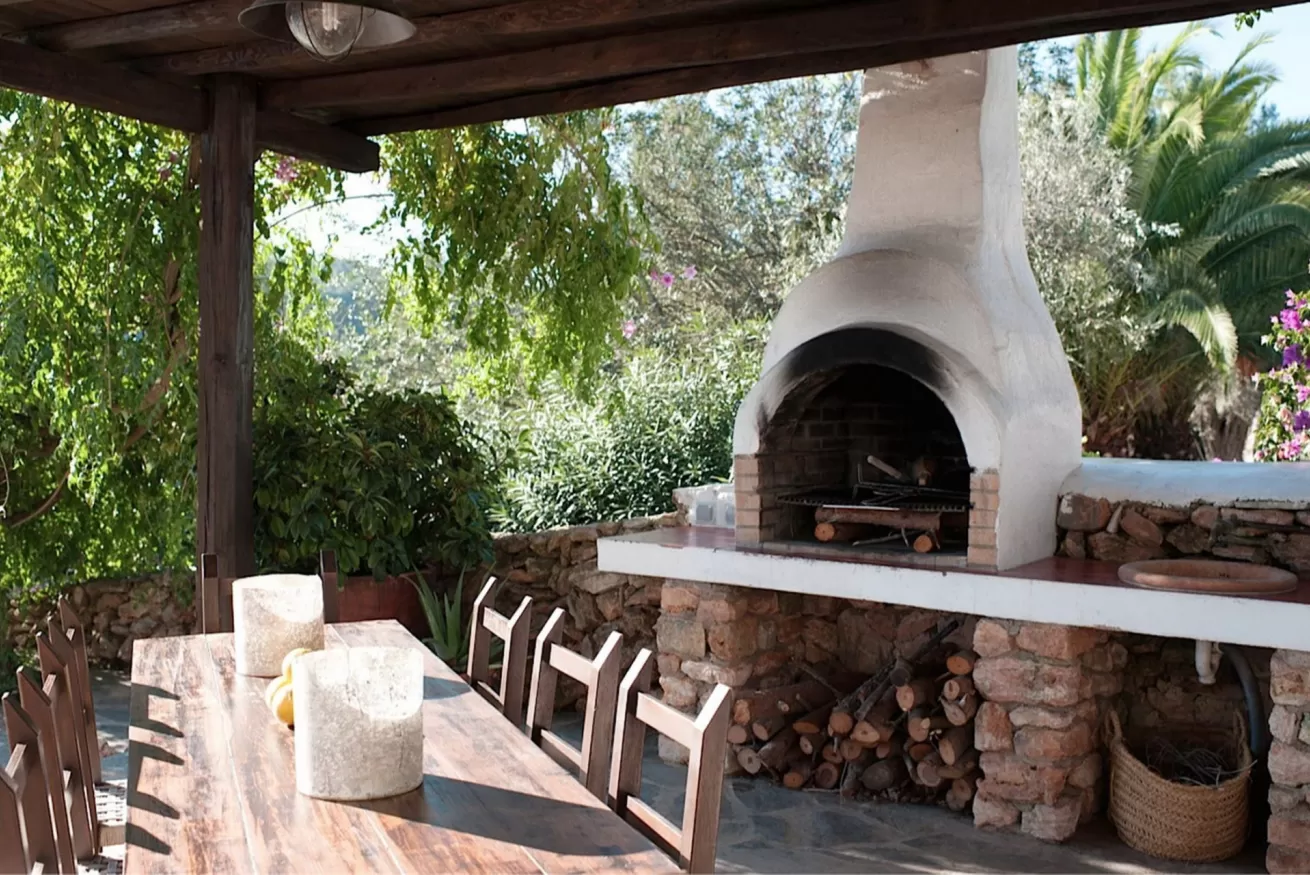 L'estate a Ibiza si vive all'aperto, e la terrazza esterna, con il suo tavolo da pranzo, offre uno scenario incantevole, completato da un'area coperta per il barbecue a bordo piscina.