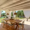 La zona pranzo all'aperto, con la capacità di accogliere fino a dodici commensali, diventa un teatro di convivialità sotto il cielo stellato. Al centro del giardino, la piscina risplende come un gioiello incastonato, mentre sotto la generosa ombra di un ulivo, un'altra area chill-out attende di accogliere chi cerca relax e privacy.