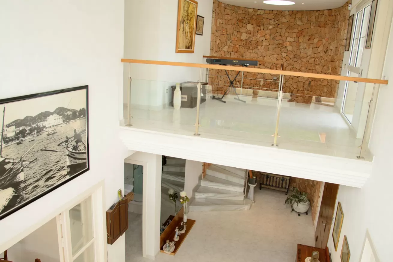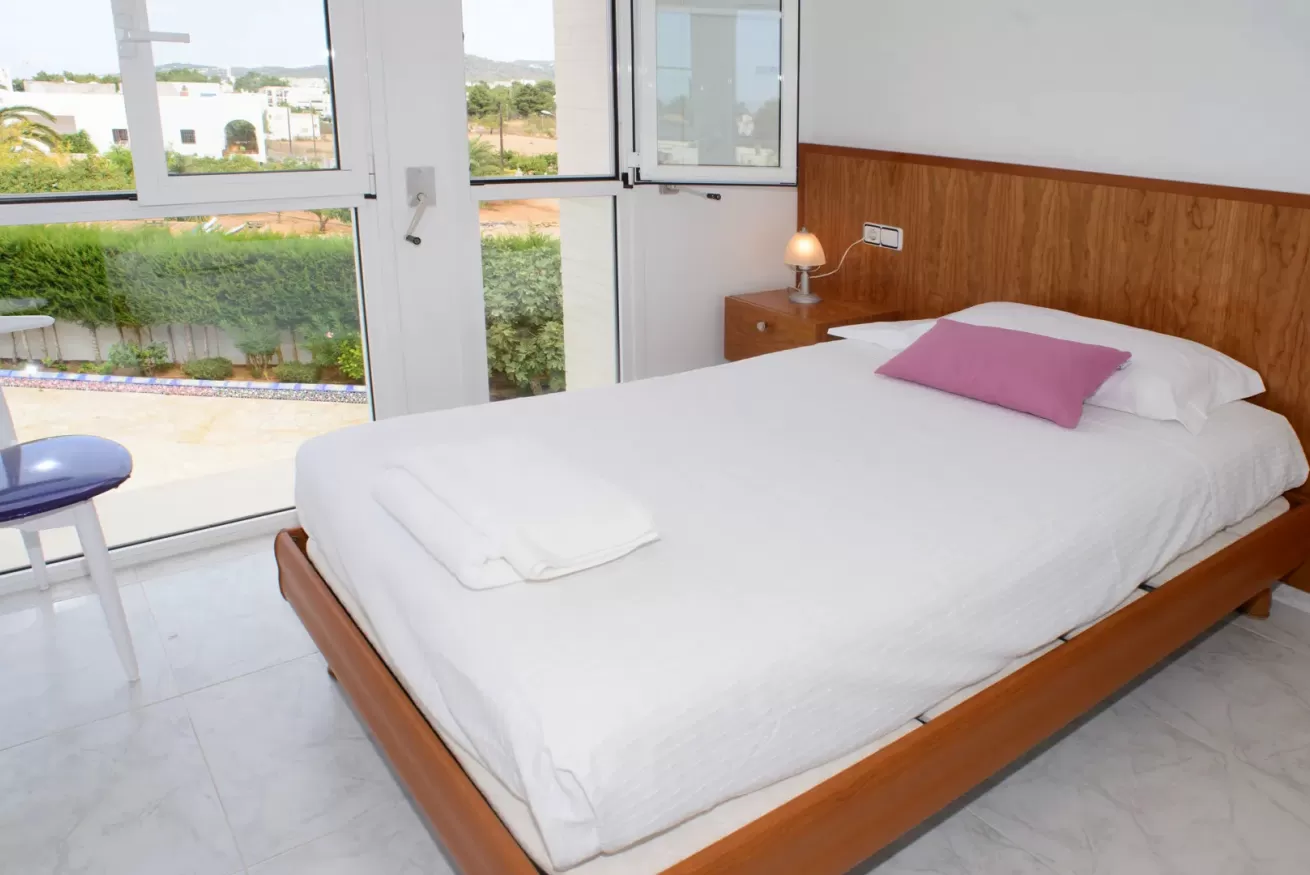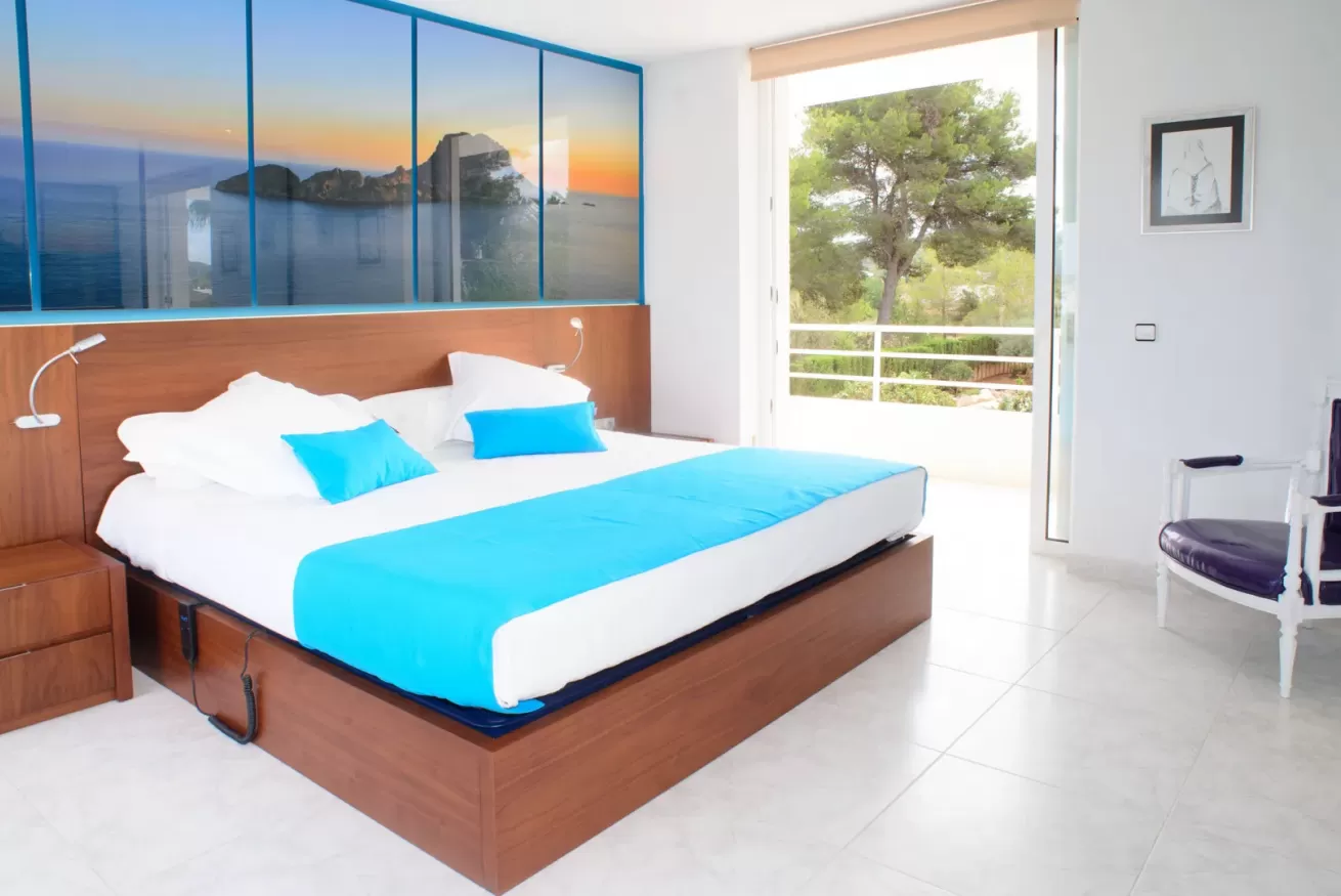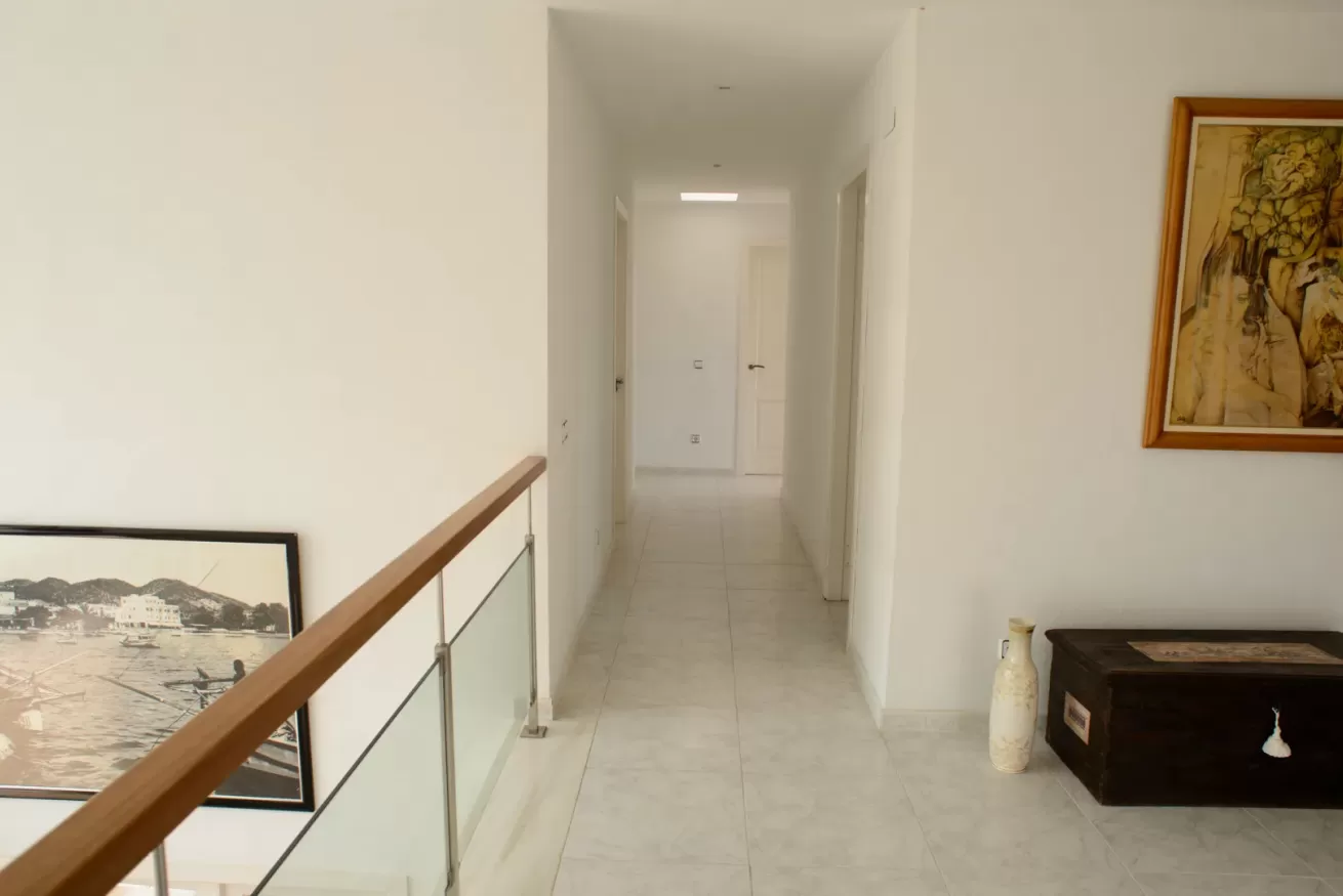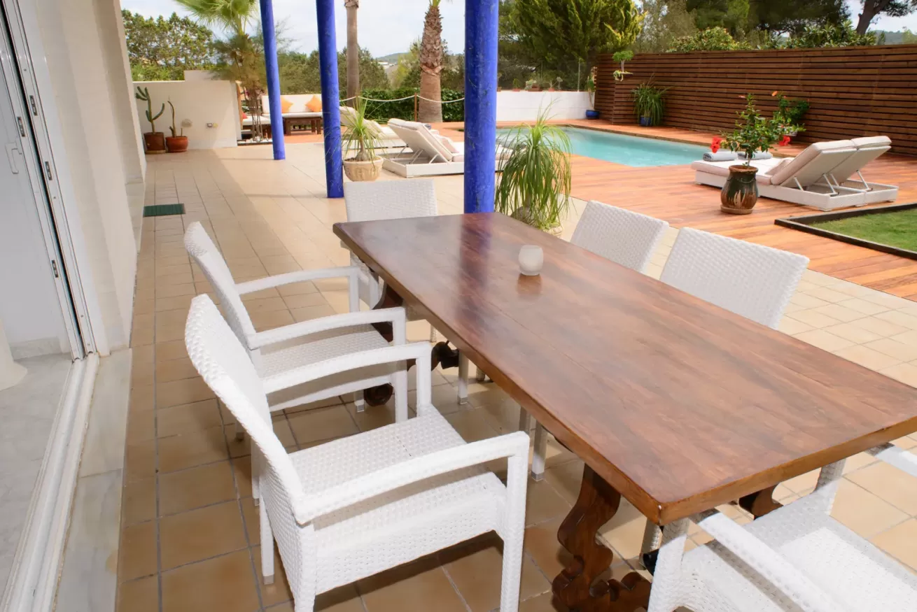 Villa Ariel è un gioiello situato a nord-ovest dell’isola, a pochi passi da Cala de Bou e dalle meraviglie di San Antonio. Le sue pareti, dall'intonaco candido, sembrano accogliere i raggi del sole con un sorriso, mentre la brezza si insinua delicatamente tra le fronde degli alberi circostanti.