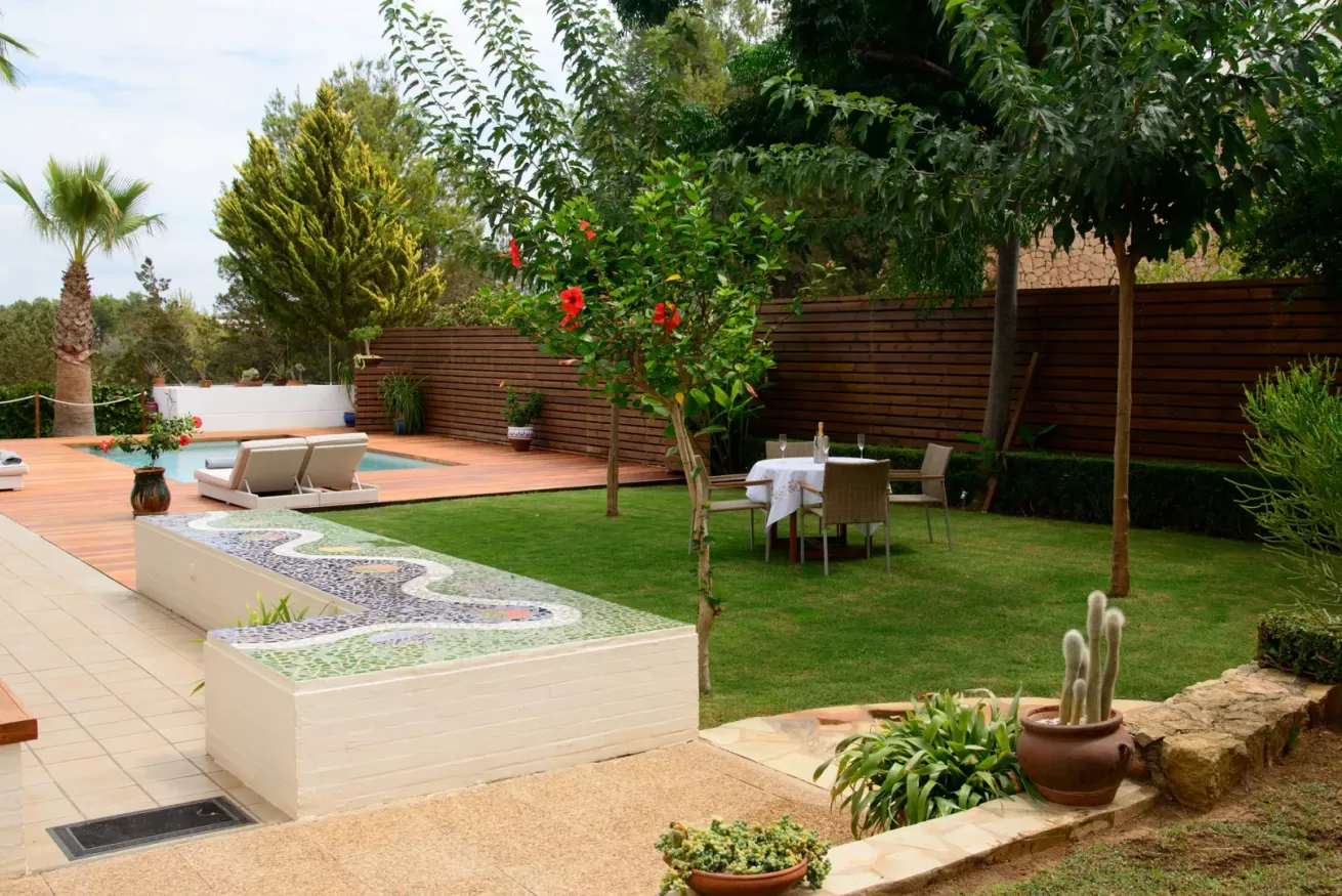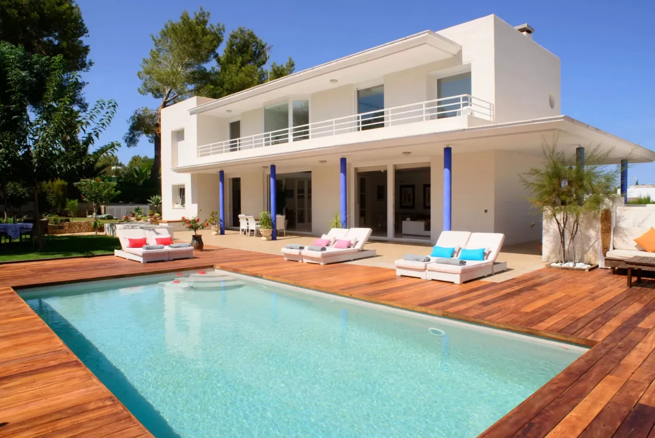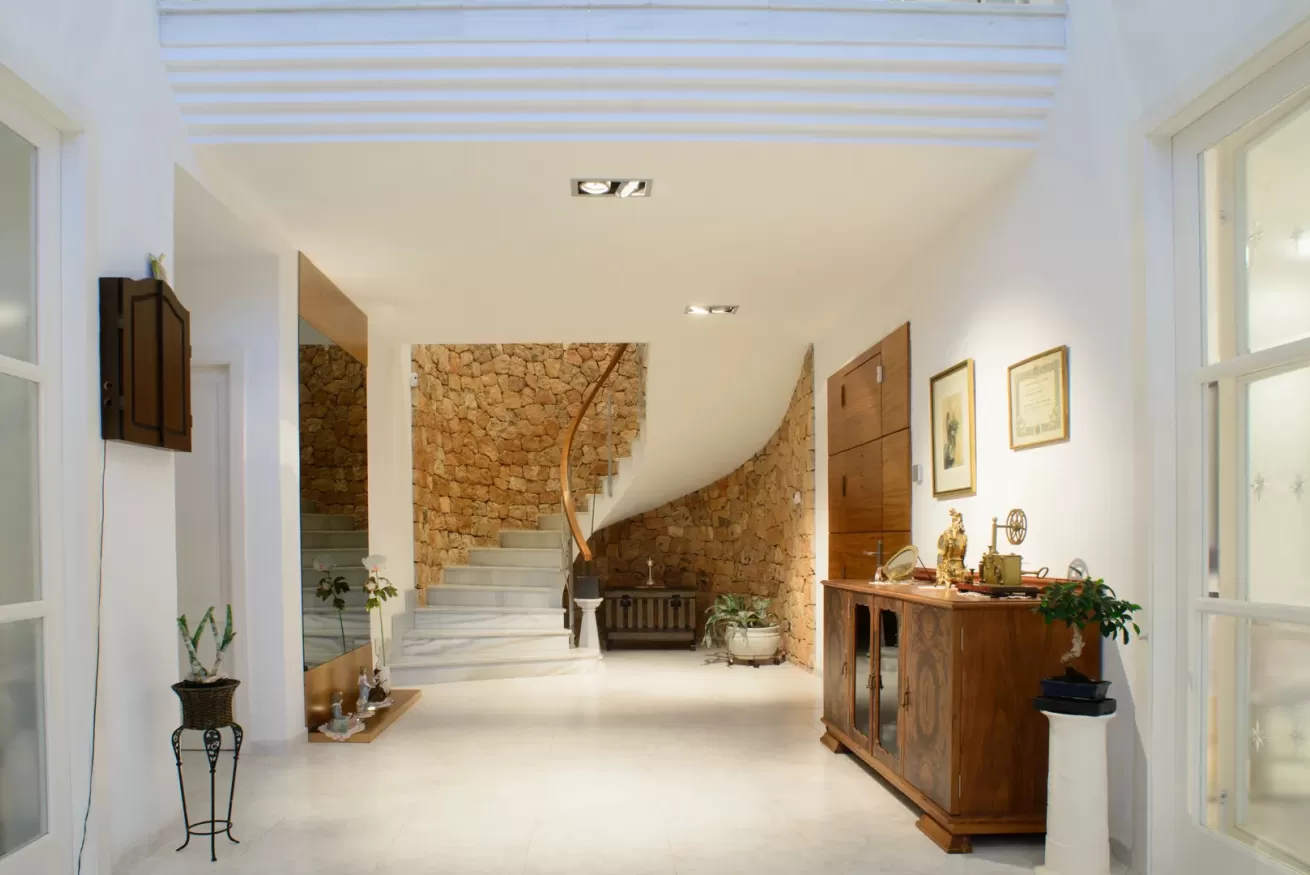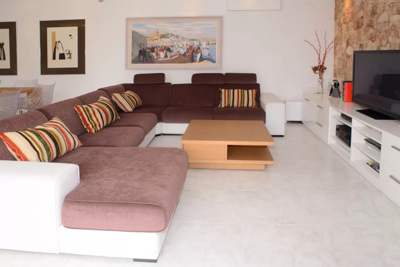 Villa Ariel è un gioiello situato a nord-ovest dell’isola, a pochi passi da Cala de Bou e dalle meraviglie di San Antonio. Le sue pareti, dall'intonaco candido, sembrano accogliere i raggi del sole con un sorriso, mentre la brezza si insinua delicatamente tra le fronde degli alberi circostanti.