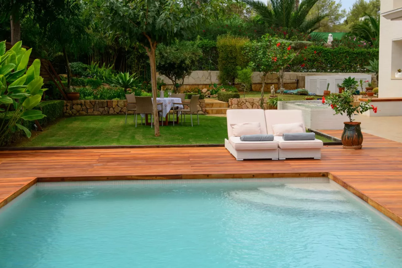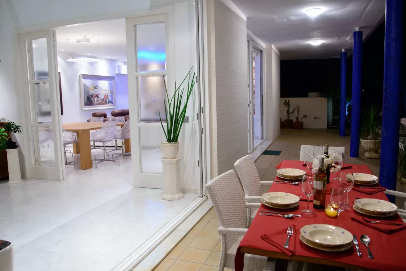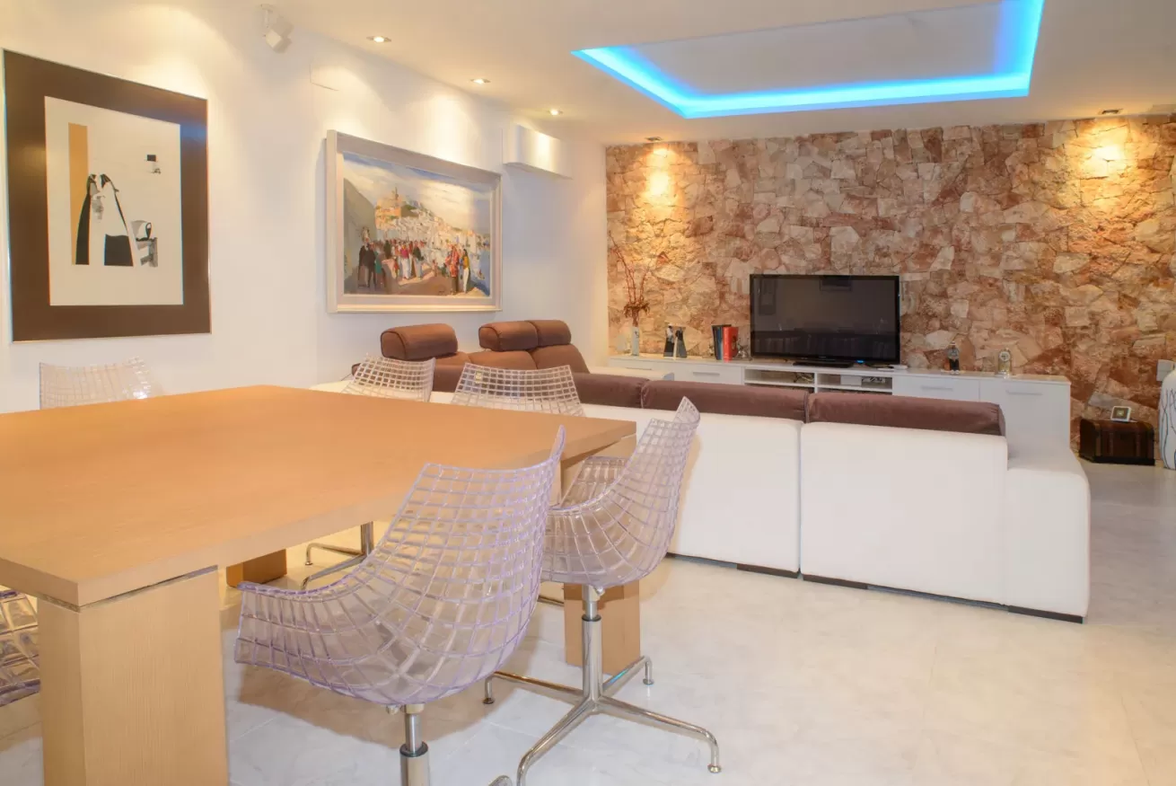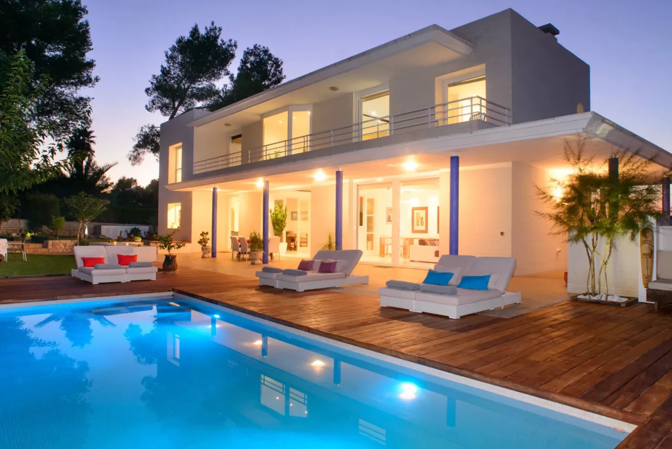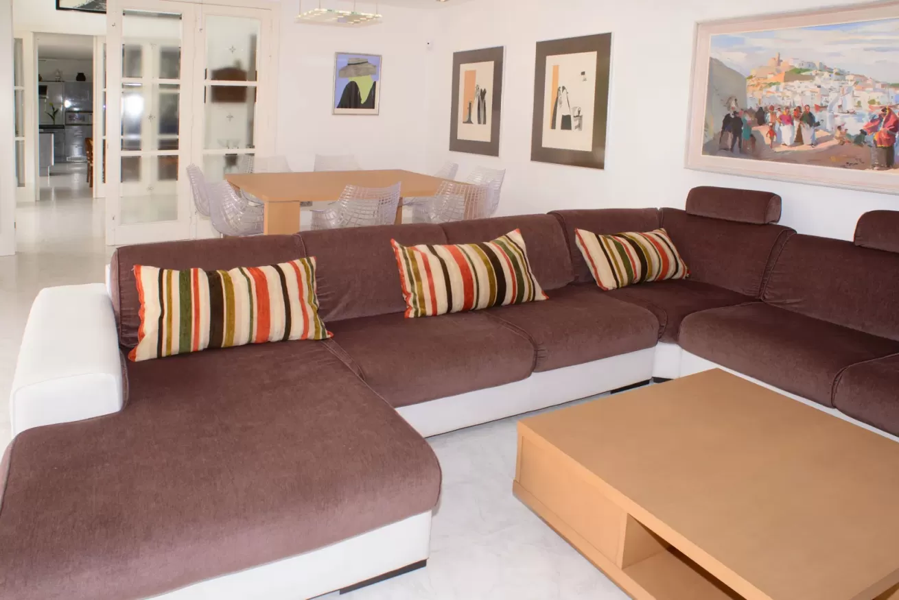 Villa Ariel è un gioiello situato a nord-ovest dell’isola, a pochi passi da Cala de Bou e dalle meraviglie di San Antonio. Le sue pareti, dall'intonaco candido, sembrano accogliere i raggi del sole con un sorriso, mentre la brezza si insinua delicatamente tra le fronde degli alberi circostanti.