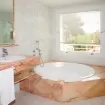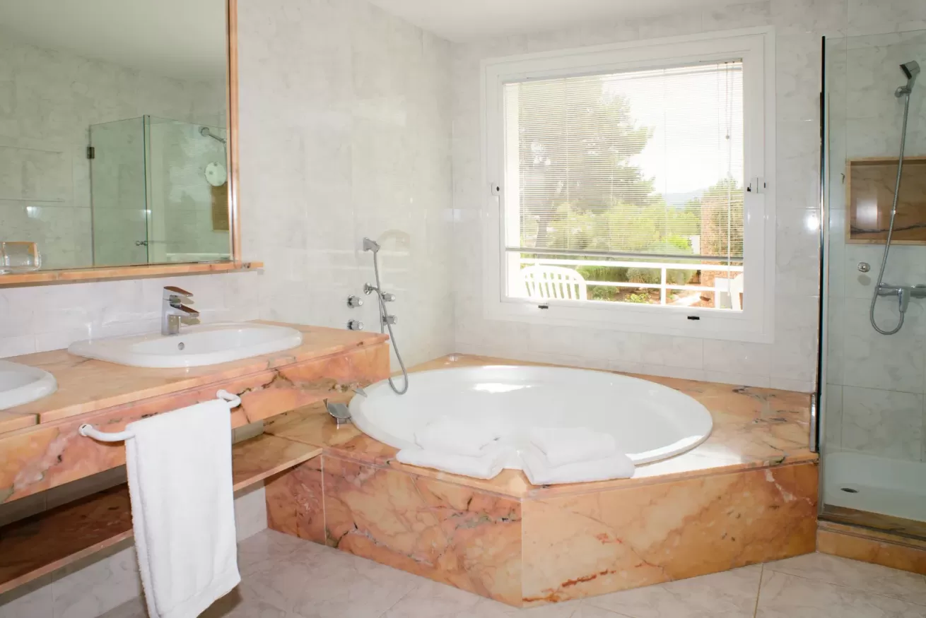 La master bedroom é dotata di bagno en-suite con doccia e vasca da bagno rotonda.
