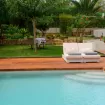 Ma è nell'abbraccio della natura che Villa Ariel rivela il suo splendore più autentico. All'esterno, il giardino si estende come un tappeto verde, un'oasi di pace e serenità dove gli uccelli cantano e il tempo sembra fermarsi. Una piscina scintillante, circondata da comode sdraio e accoglienti divanetti, invita a tuffarsi nelle fresche acque cristalline.