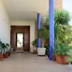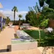 Accanto, un'area pranzo all'aperto offre la possibilità di gustare i piaceri della cucina locale sotto i raggi del sole del mediterraneo.
