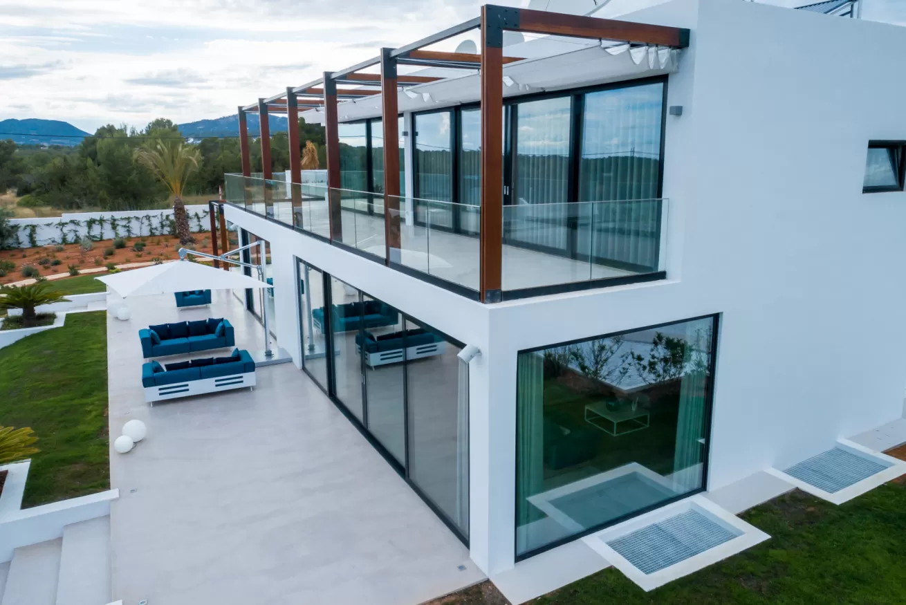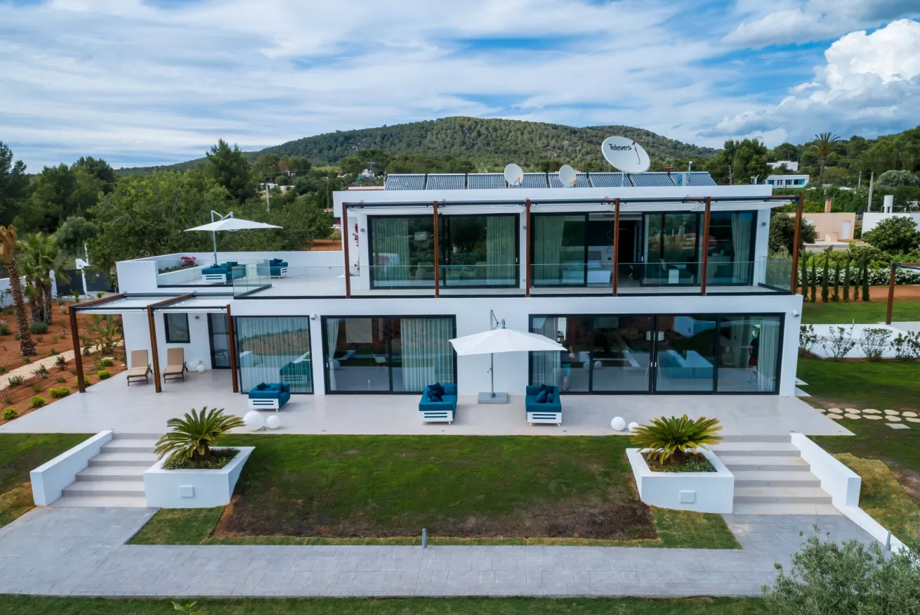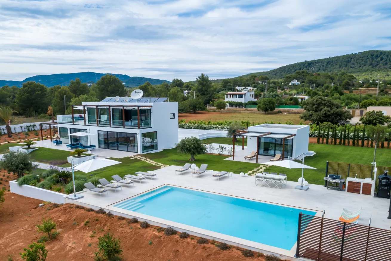 Le grandi finestre poste su entrambi i piani della villa la rendono particolarmente simile alle famose ville di Hollywood, con l’unica differenza che il luogo in cui si trova è ben piú ambito: Ibiza. Puó ospitare 12 persone, conta 6 camere da letto e 5 bagni ed è dotata di parcheggio. Si trova a soli 10 minuti dalla città di Ibiza e di San Antonio.