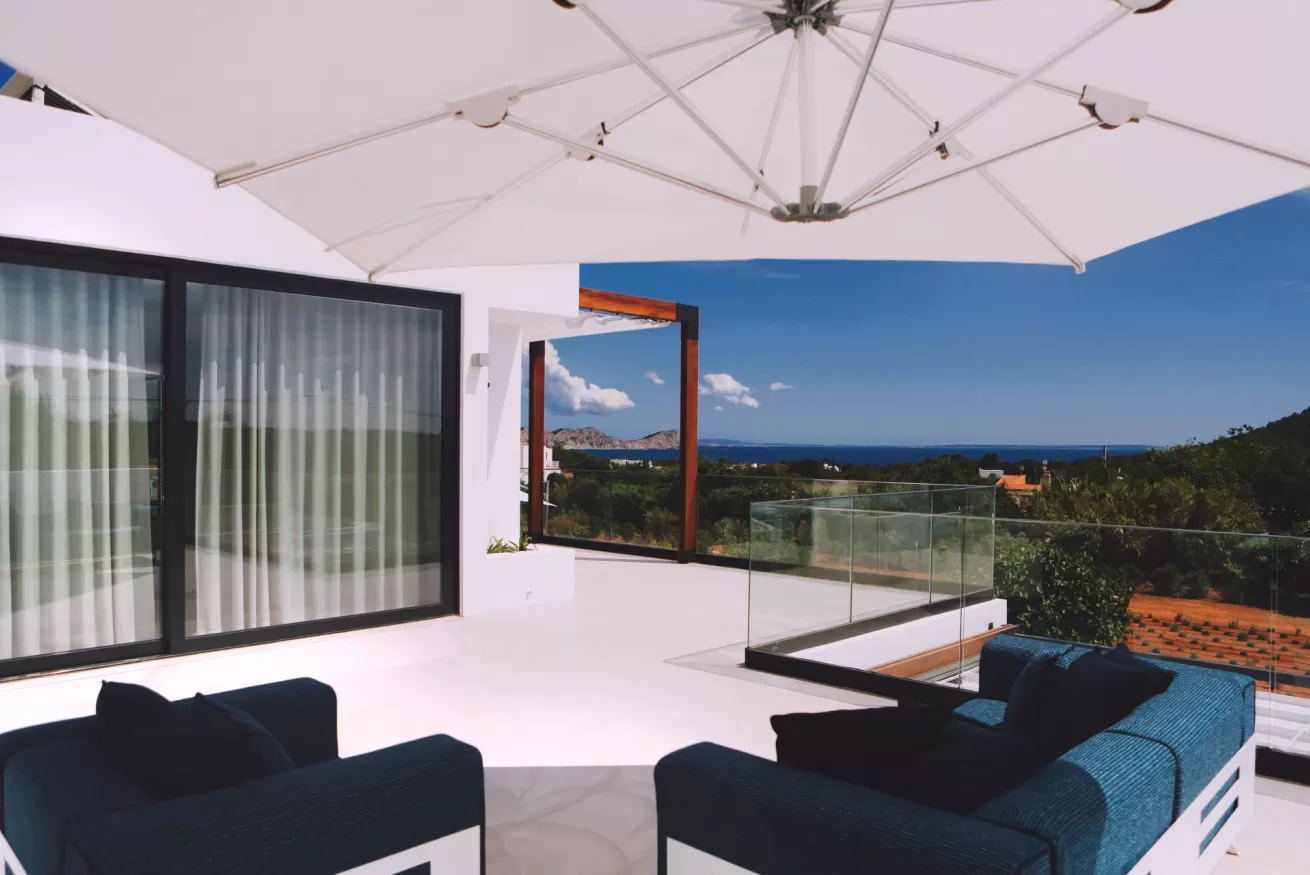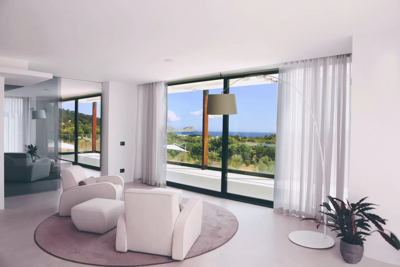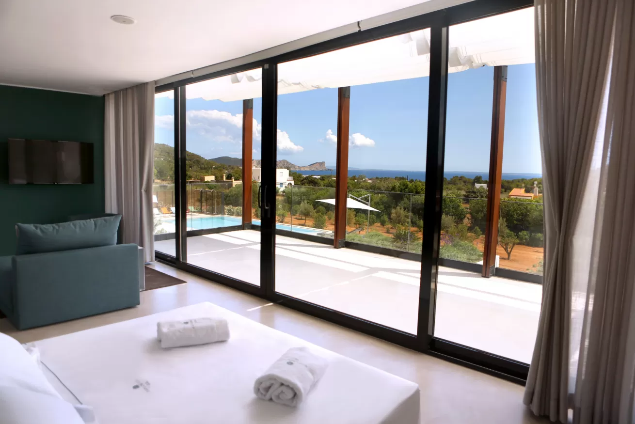 Le grandi finestre poste su entrambi i piani della villa la rendono particolarmente simile alle famose ville di Hollywood, con l’unica differenza che il luogo in cui si trova è ben piú ambito: Ibiza. Puó ospitare 12 persone, conta 6 camere da letto e 5 bagni ed è dotata di parcheggio. Si trova a soli 10 minuti dalla città di Ibiza e di San Antonio.