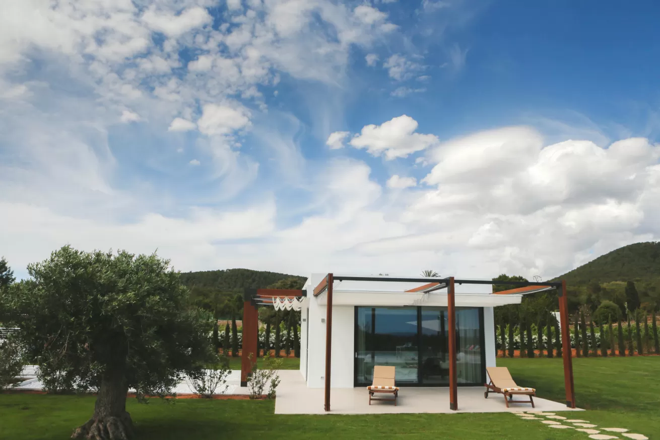 Posta al centro di un paesaggio campestre nella zona di Cala Jondal, Villa Cantik si traveste da casa di campo senza rinunciare alla sua natura di villa di lusso, con un design moderno e di gusto.