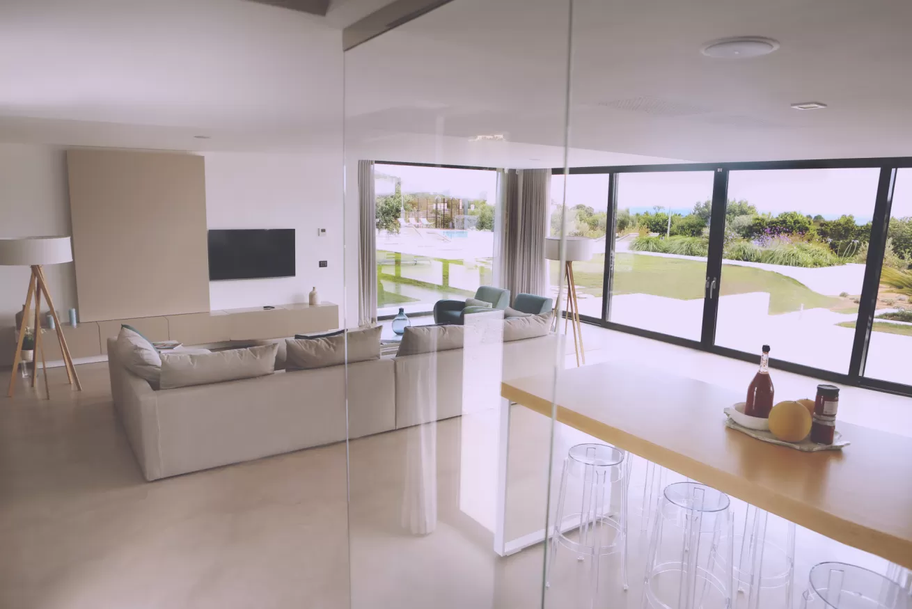 L’intera villa è dotata di grandi vetrate per permettere una fantastica vista da qualsiasi angolazione.