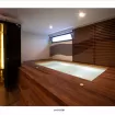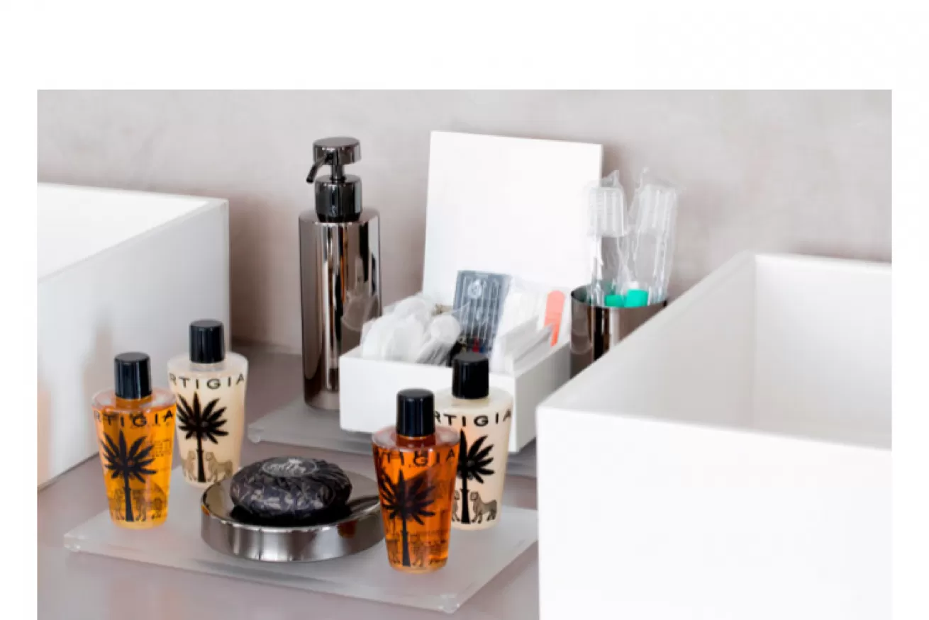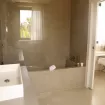 Nei bagni, a differenza delle camere da letto in cui regnano il bianco e lo stile minimal, l’arredamento è arricchito dai toni del marrone e del legno.