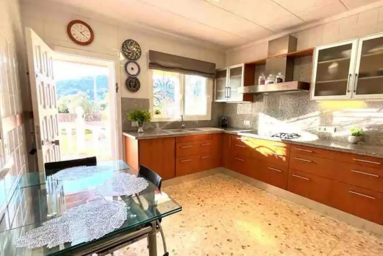 Si accede alla villa attraverso la cucina a vista, completa di ogni confort moderno.