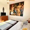 Dall'altra estremità del giardino, invece, si puó accedere all’altra parte della villa che comprende una zona giorno propria con accesso indipendente, salone e una cucina completamente attrezzata. Dalla cucina si accede infine alla camera da letto matrimoniale con bagno ensuite.