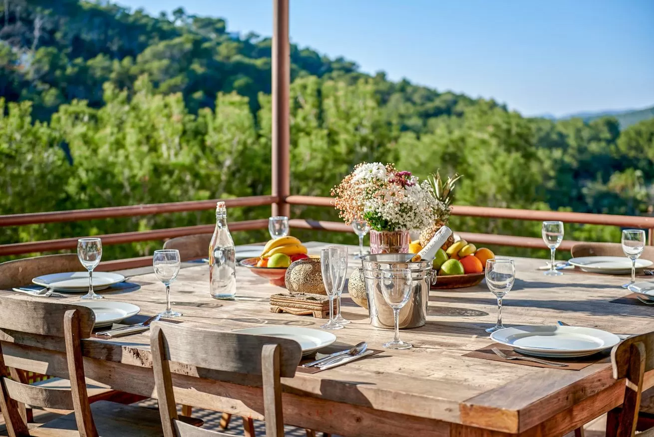 Potrai organizzare la migliore cena della tua vita di fronte a uno spettacolare tramonto, osservando l’isola di Formentera da lontano, respirando l’aria che profuma di mare e ascoltando il rumore del vento che passa tra gli alberi, nell’attesa di un nuovo giorno all’insegna della scoperta di Ibiza.