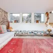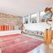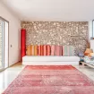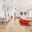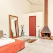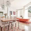 Dal punto di vista di stile e design, il salone puó essere considerato la punta di diamante della casa. L’arancione, il marrone, il bianco e altre tonalità piú scure si fondono per creare un ambiente armonico.