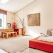 I quadri alle pareti, i libri collocati sul tavolino posto dietro il divano, il tavolino da caffé in legno al centro della camera, grandi finestre che lasciano entrare la luce: tutto concorre a creare un ambiente accogliente. Se ami leggere, non mancherà la possibilità di scegliere un libro interessante.