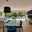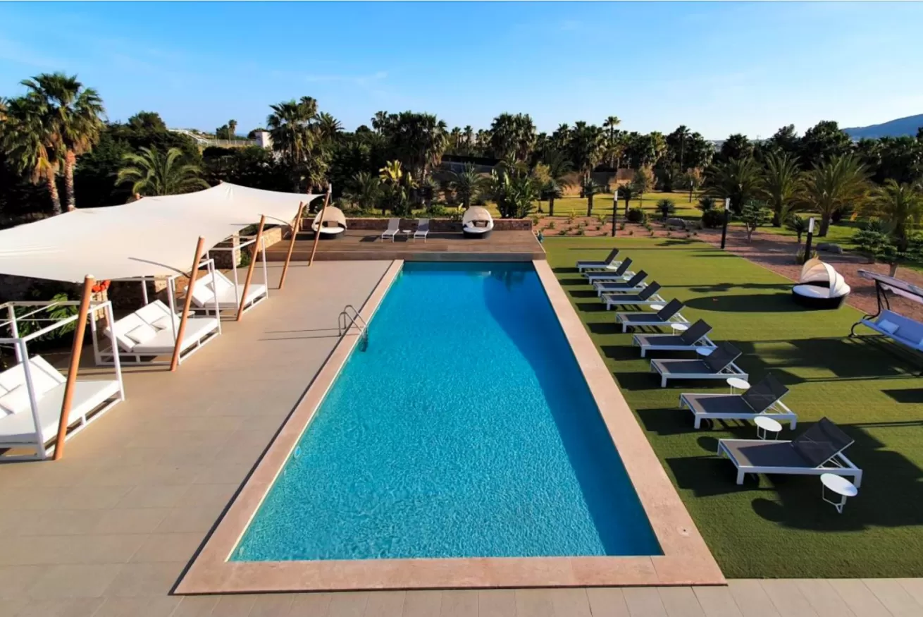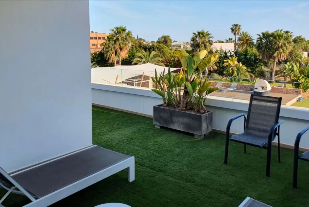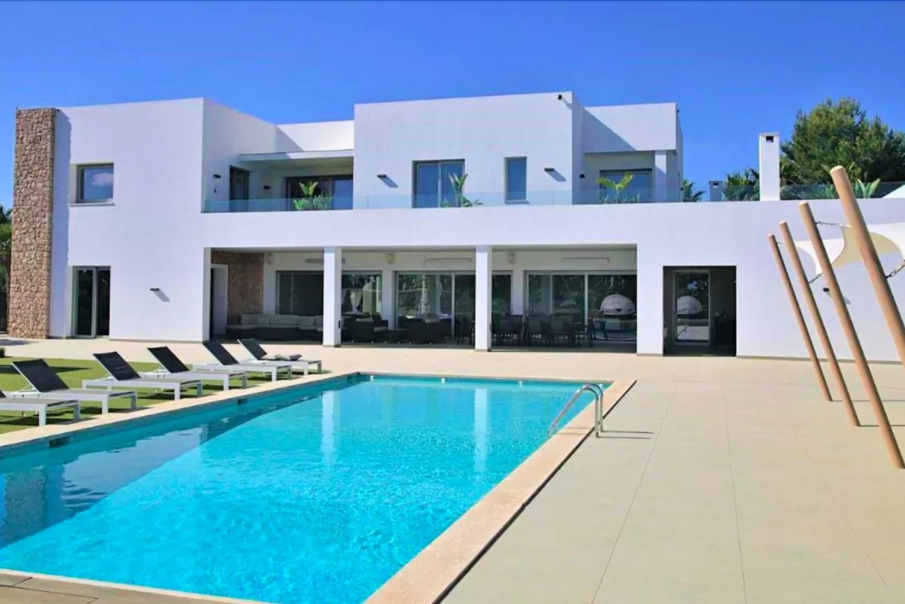 Dalla zona pranzo, si accede alla zona giorno, il luogo ideale per rilassarsi e da cui si può godere di una vista spettacolare sulla piscina, sul giardino e su Dalt Vila grazie alle enormi finestre.