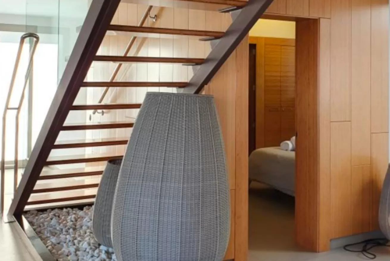 Una bella scala decorata con piante apre il percorso al primo piano, che è composto da tre camere da letto.