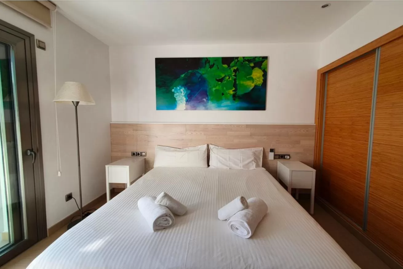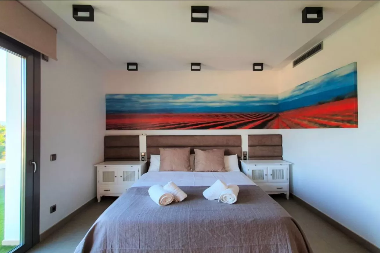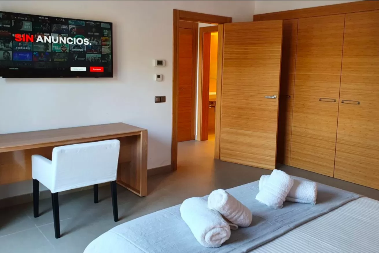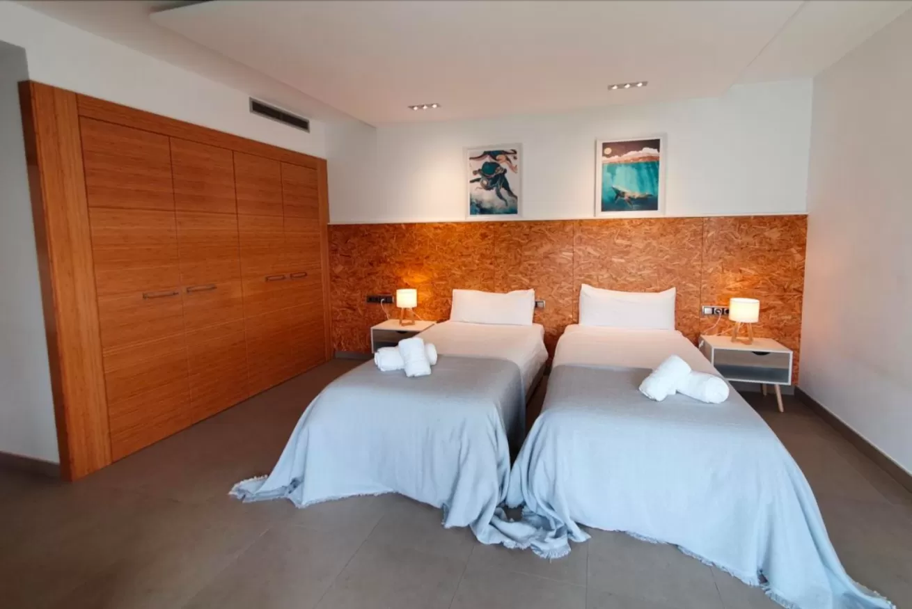 Sul lato destro si accede a 2 camere da letto: una matrimoniale con bagno e una doppia con due letti singoli. Ogni camera dispone di TV al plasma e armadio a muro.