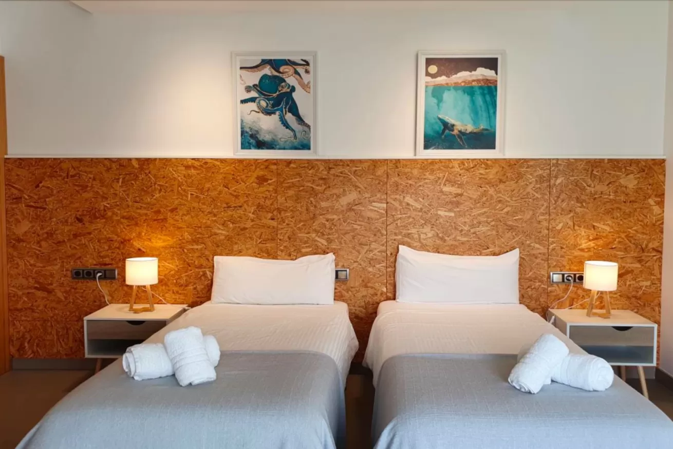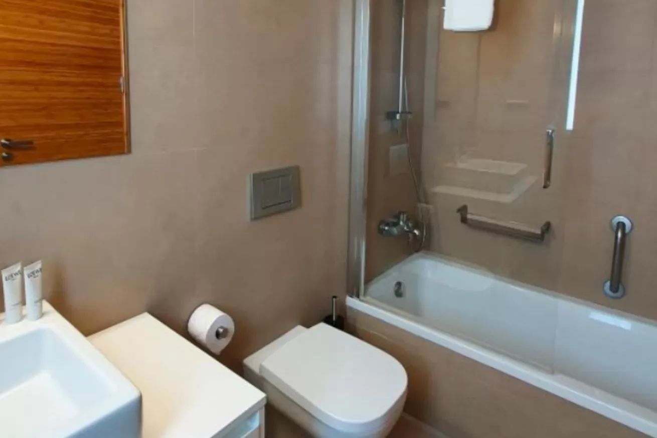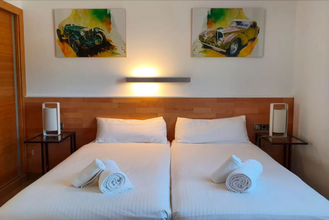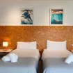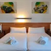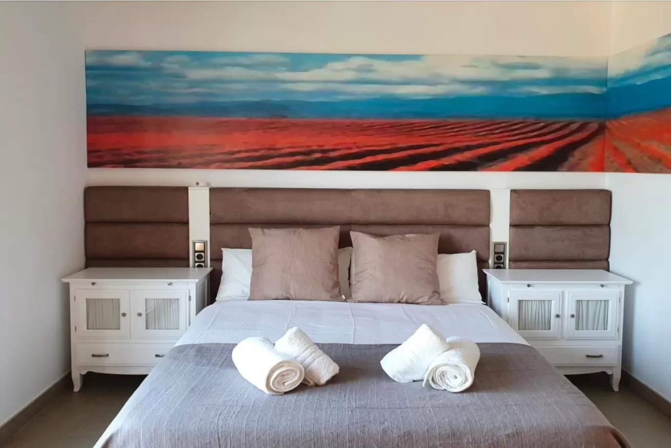 Sul lato destro si accede a 2 camere da letto: una matrimoniale con bagno e una doppia con due letti singoli. Ogni camera dispone di TV al plasma e armadio a muro.