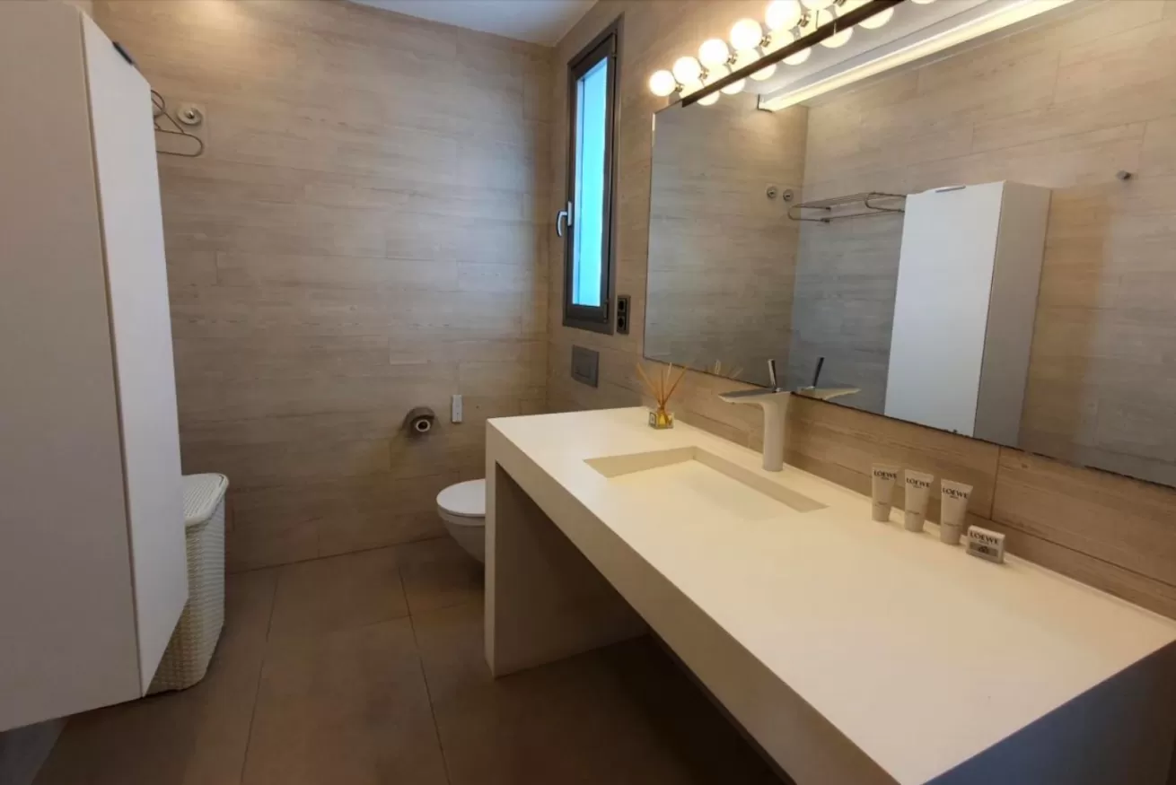 Al piano terra si trova una toilette, due camere da letto matrimoniali con bagno ensuite, entrambe con armadi a muro e TV al plasma.