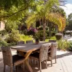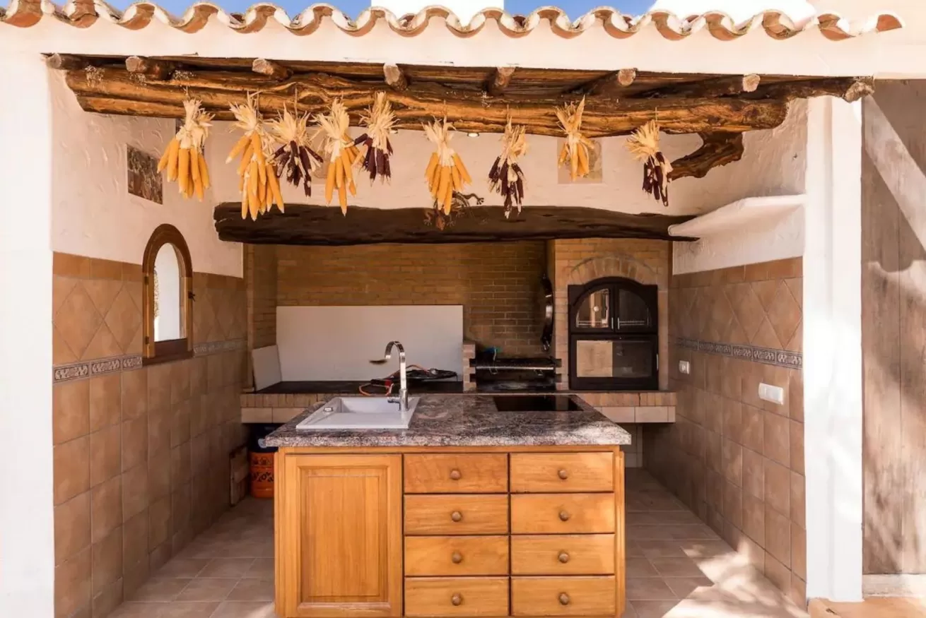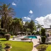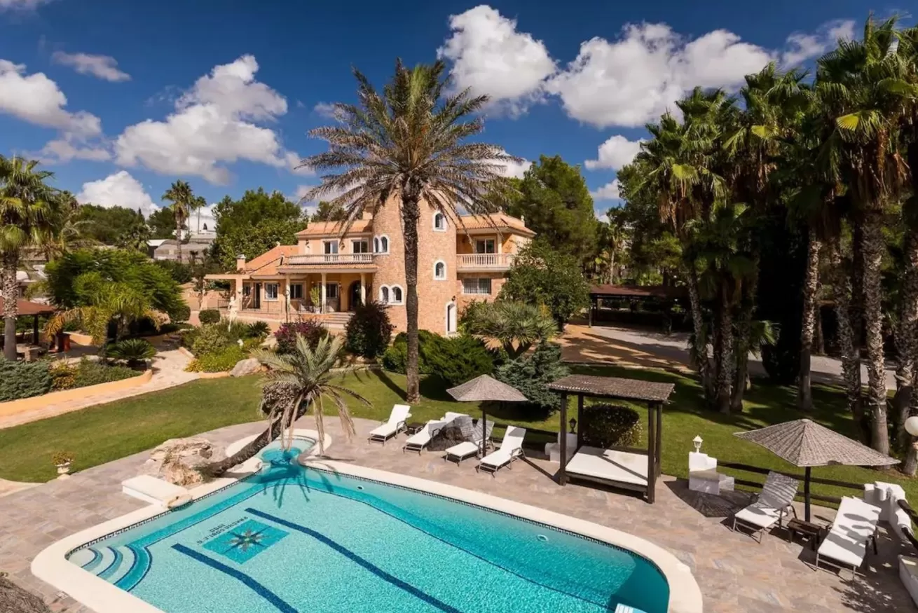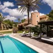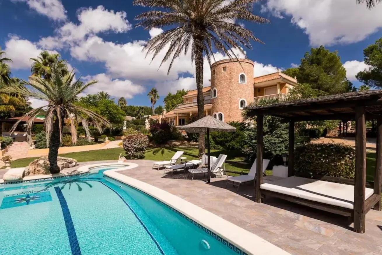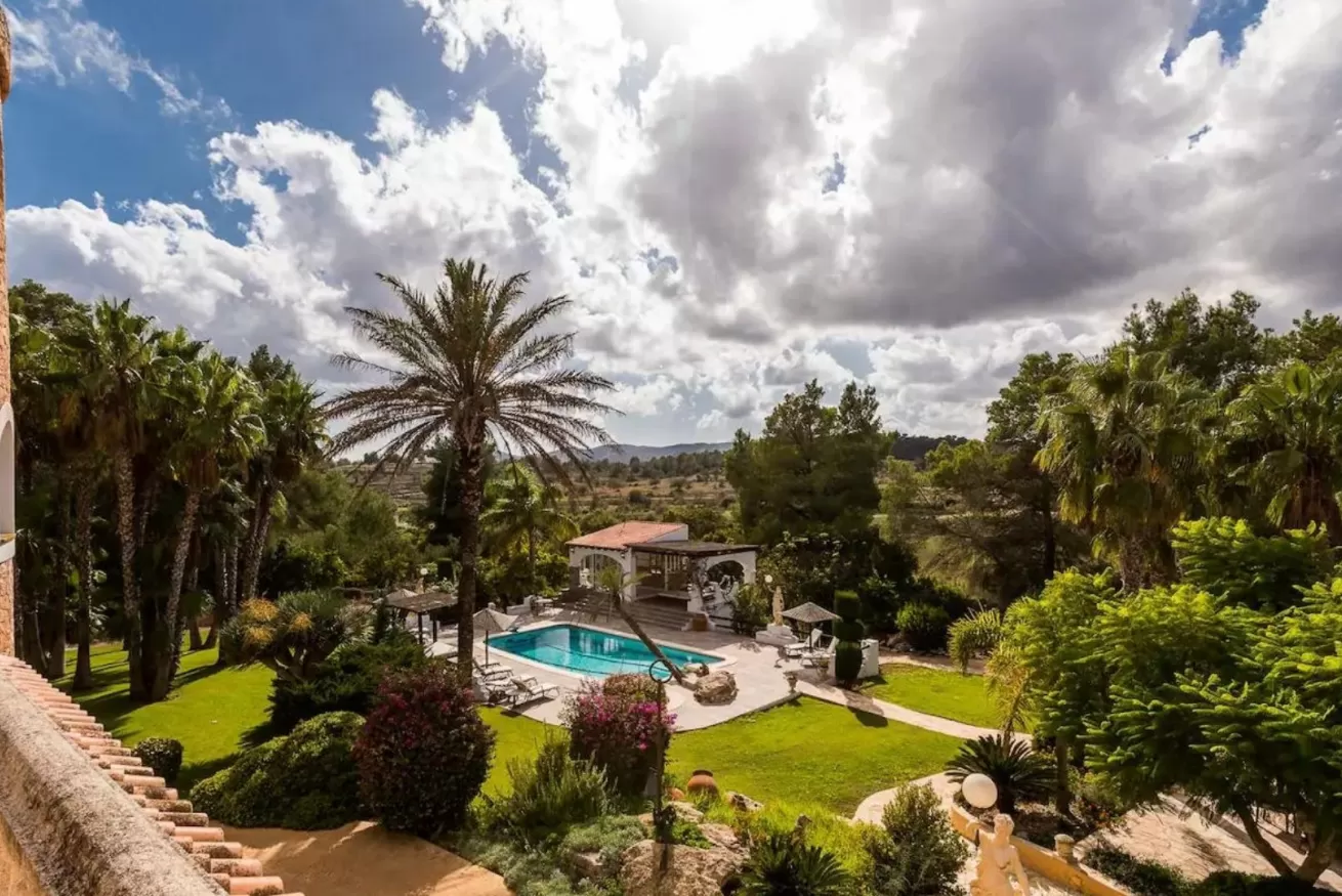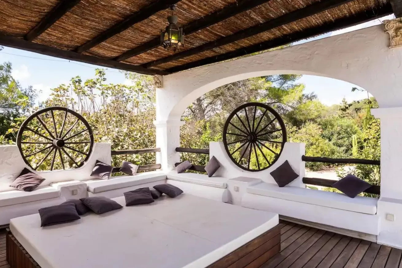La villa ha un design unico: circondata da un enorme giardino, si estende su 3500 metri quadri di terreno in una tranquilla zona eco-agricola tra Cana Negreta e Santa Gertrudis.