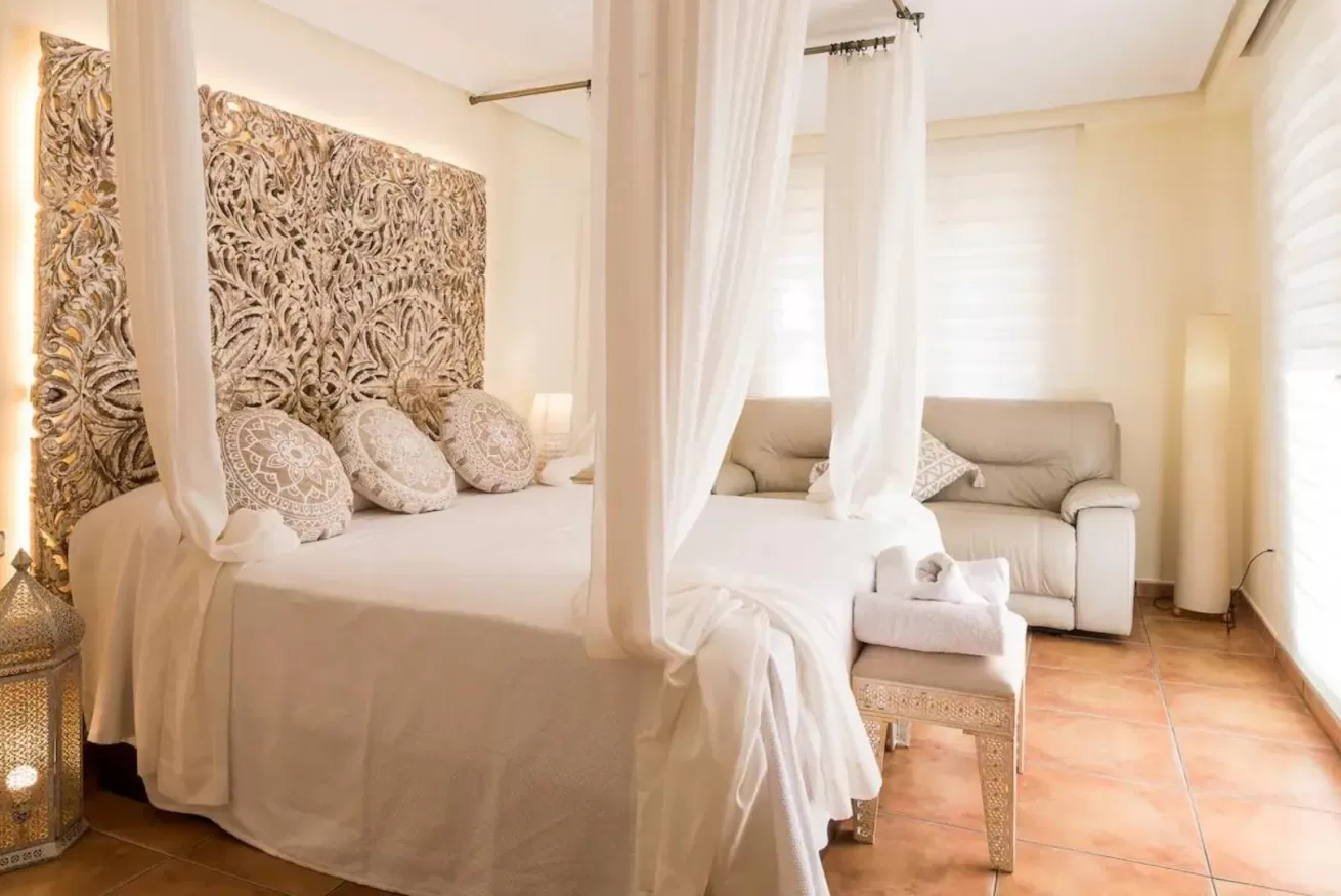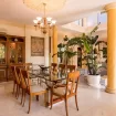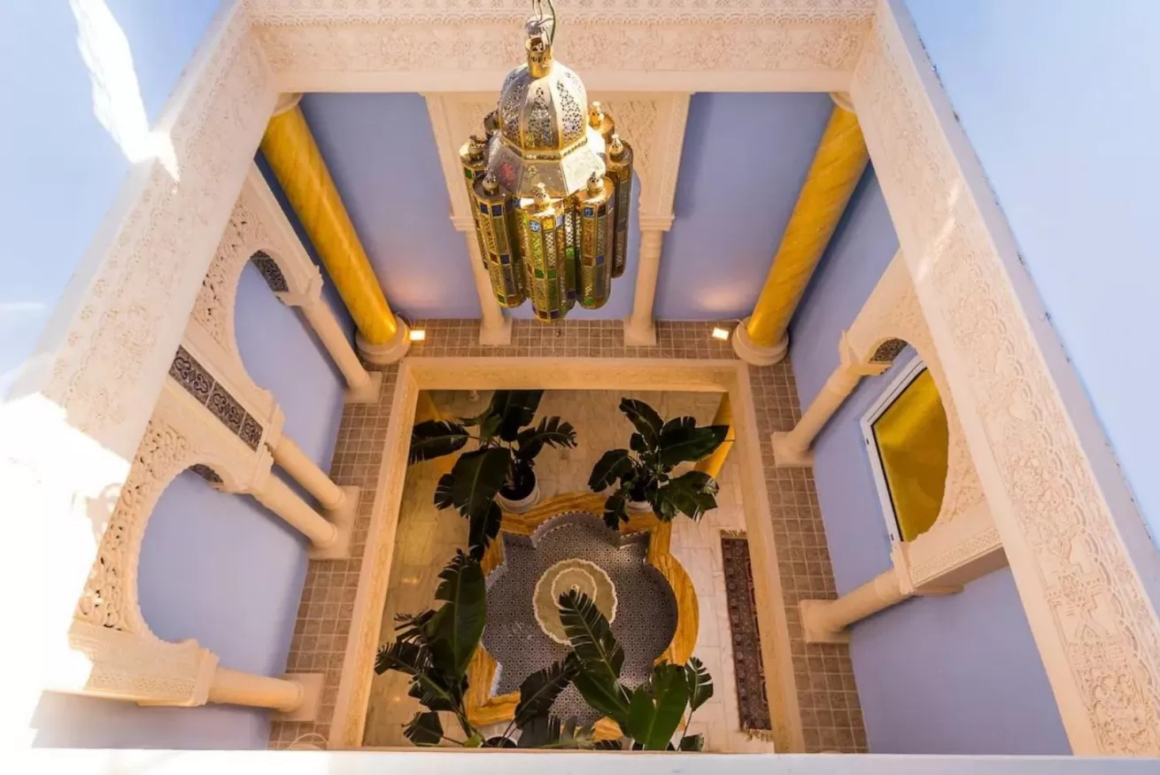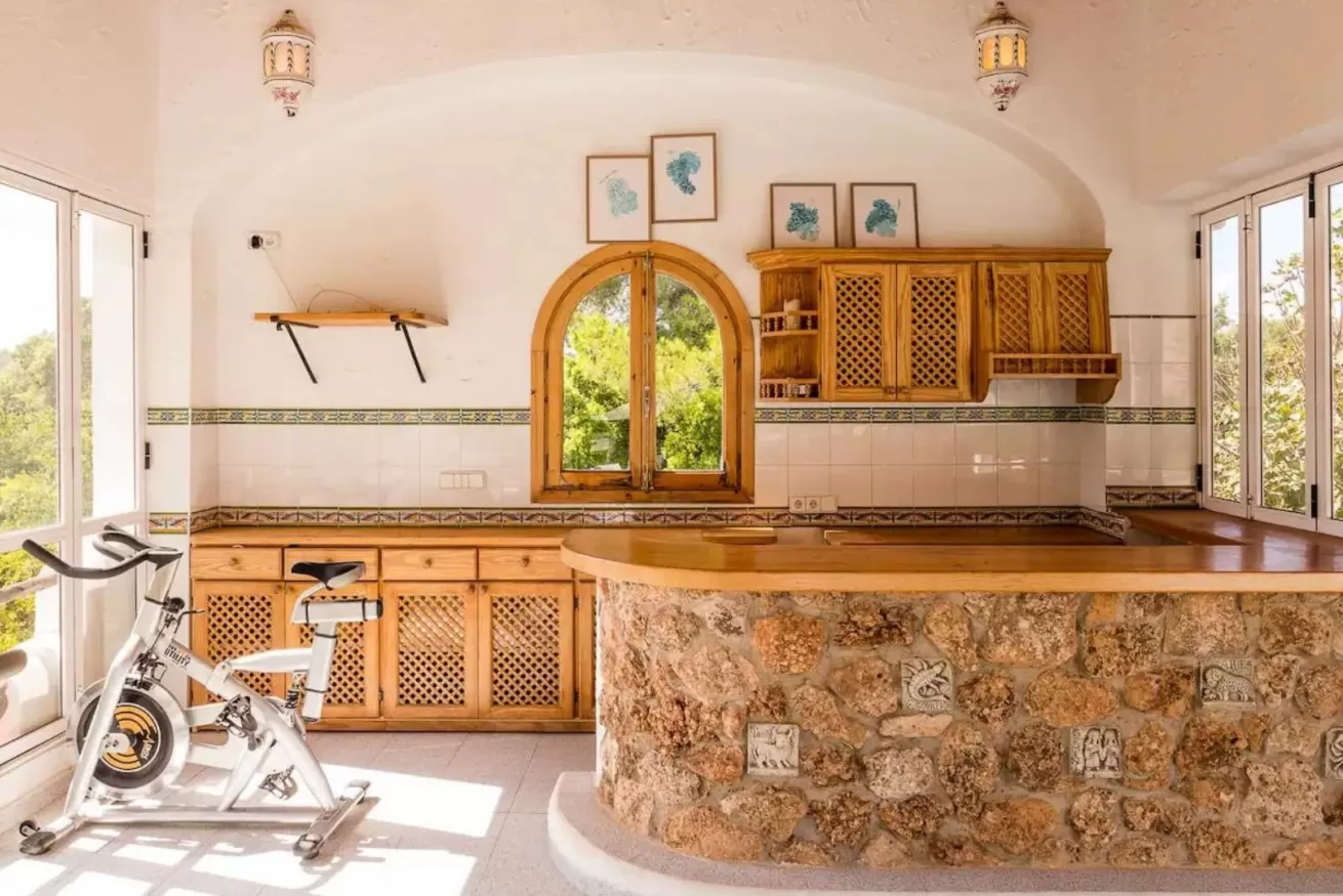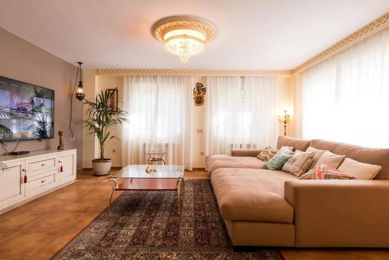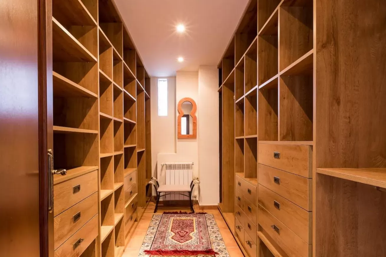 La zona giorno della villa si presenta elegante, con una cucina completamente moderna dotata di qualsiasi confort, e una zona relax intorno al camino. Ad attirare subito l’attenzione, poi, c’è un enorme soggiorno con architettura in rifinito stile marocchino. Lo spazio si arricchisce di elementi classici grazie alla presenza di una fontana e di uno splendido pianoforte a coda bianco.