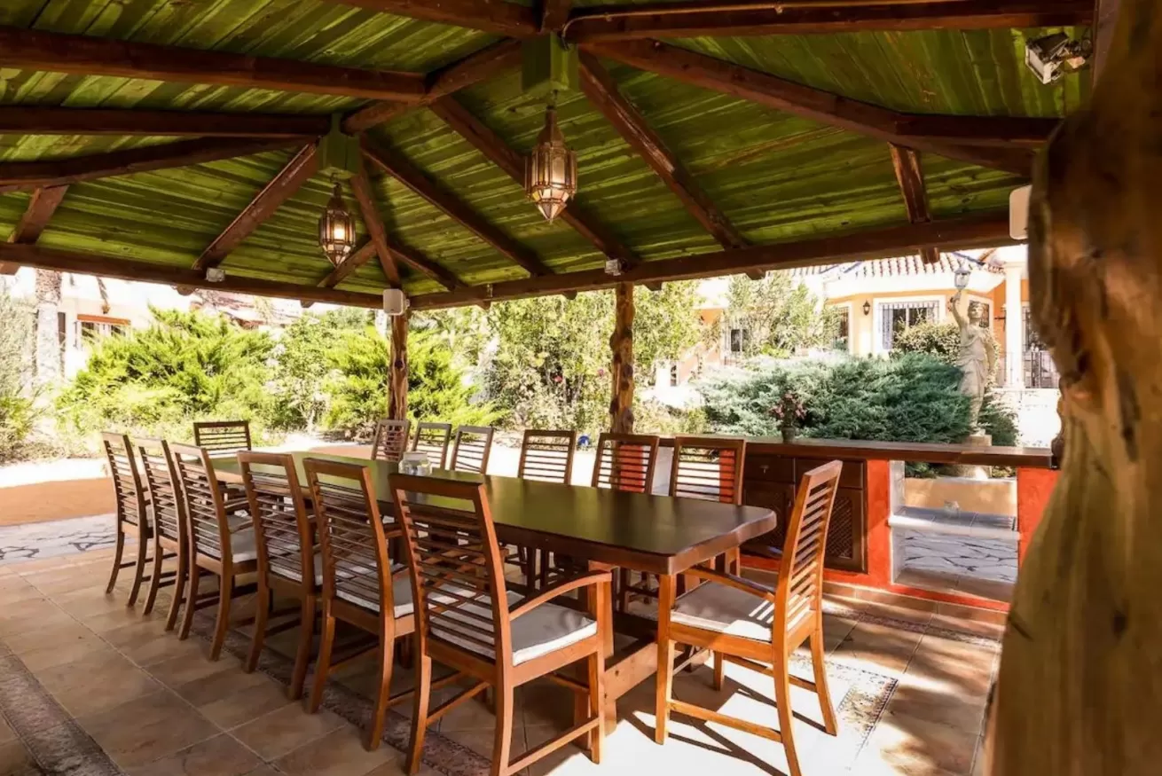 Nella zona all’esterno c’è un’enorme e profonda piscina, intorno alla quale è possibile imbattersi nella zona relax, l’area barbecue e la zona pranzo all’aperto.