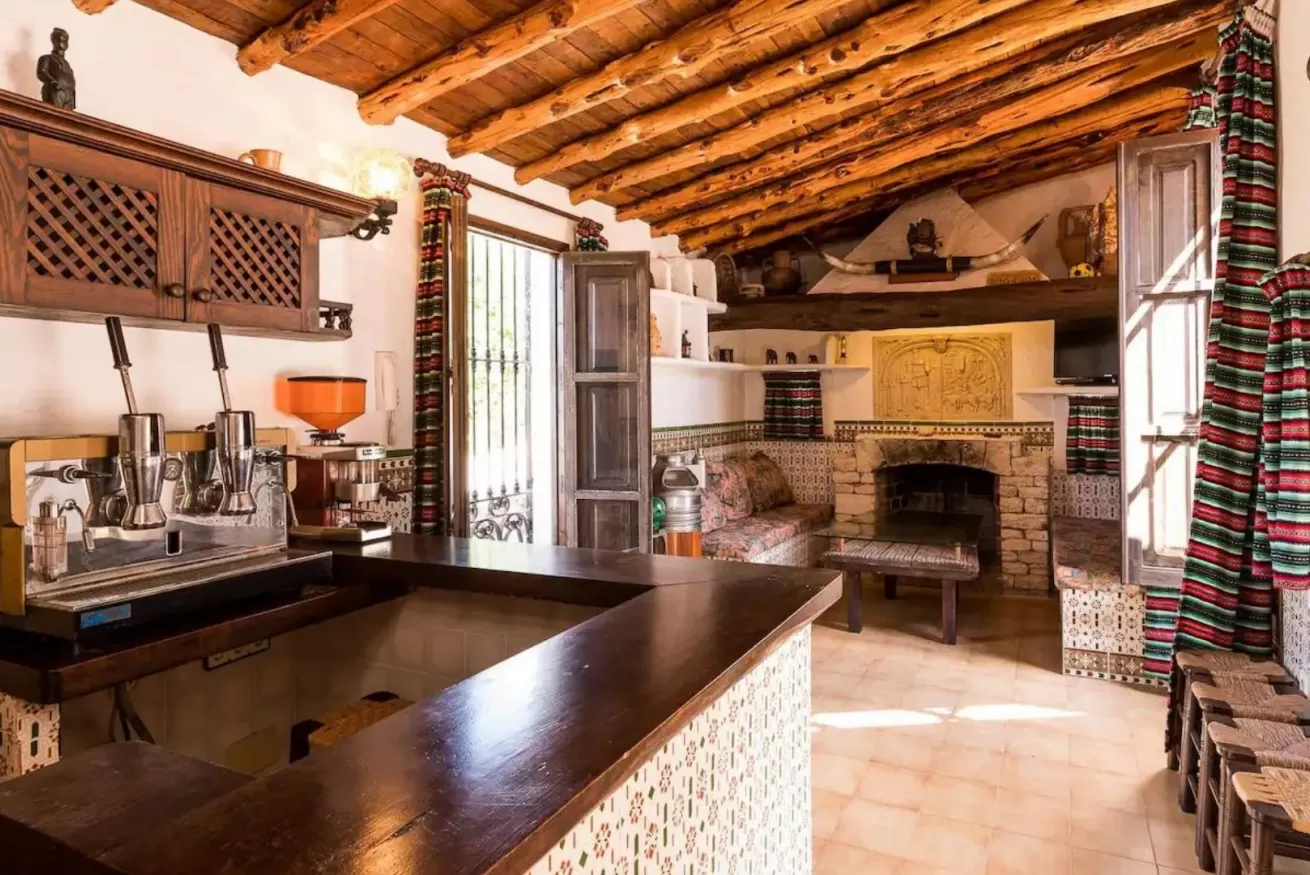 Un’altra zona relax, più isolata, dotata di un bancone bar, caminetto e divani, ti permetterà di ritagliarti dei momenti di privacy ancor più intensi.