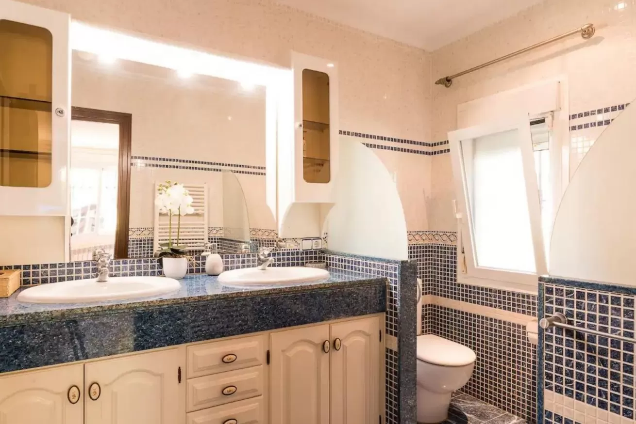 La villa dispone di 9 bagni e 9 camere da letto, di cui alcune con bagno ensuite, e tutte elegantemente arredate con elementi d’arredo di alta qualità.