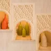 Le linee morbide e i colori caldi dello spazio di questo ambiente si accentuano nel loro essere accoglienti grazie alla presenza delle numerose piante che fanno da perimetro.