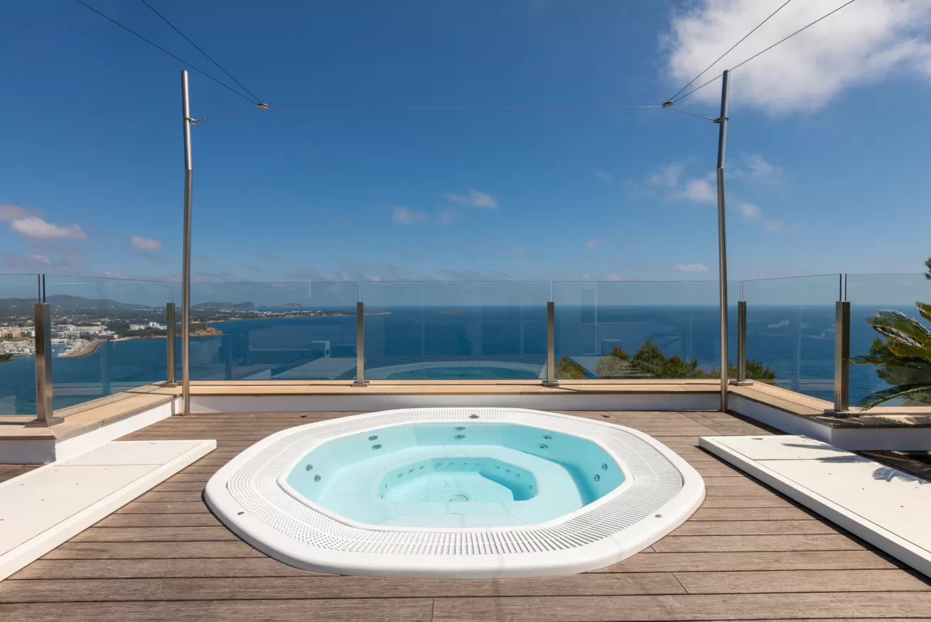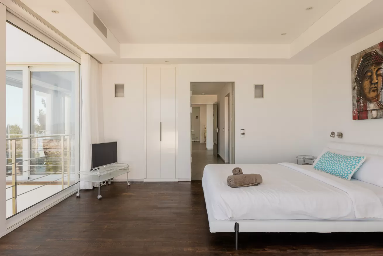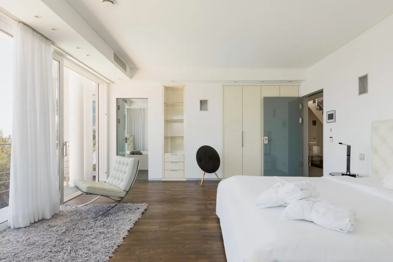 Ubicata a Santa Eularia, nel cuore della paradisiaca Ibiza, puó ospitare fino a 10 persone: conta 4 camere da letto e 4 bagni, piú un appartamento con la quinta camera e il quinto bagno perfetti per ospitare lo staff domestico. Nessuno dei suoi ospiti avrà mai problemi di spazio!