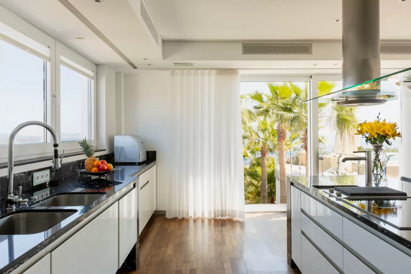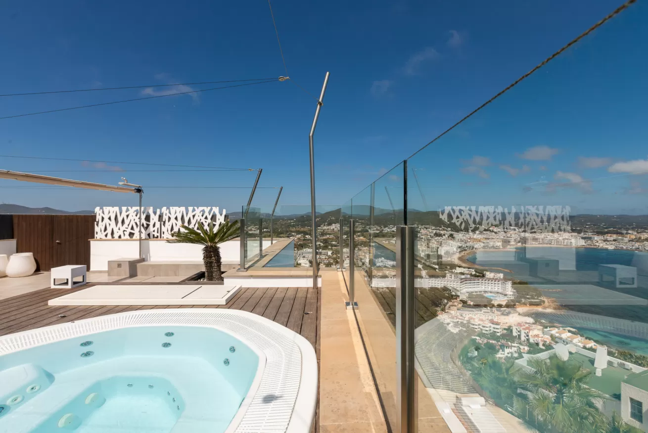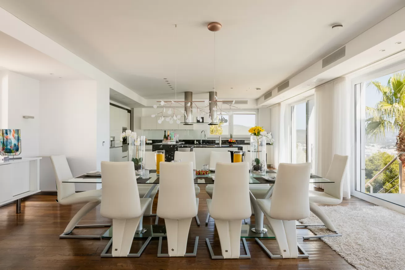 Ubicata a Santa Eularia, nel cuore della paradisiaca Ibiza, puó ospitare fino a 10 persone: conta 4 camere da letto e 4 bagni, piú un appartamento con la quinta camera e il quinto bagno perfetti per ospitare lo staff domestico. Nessuno dei suoi ospiti avrà mai problemi di spazio!