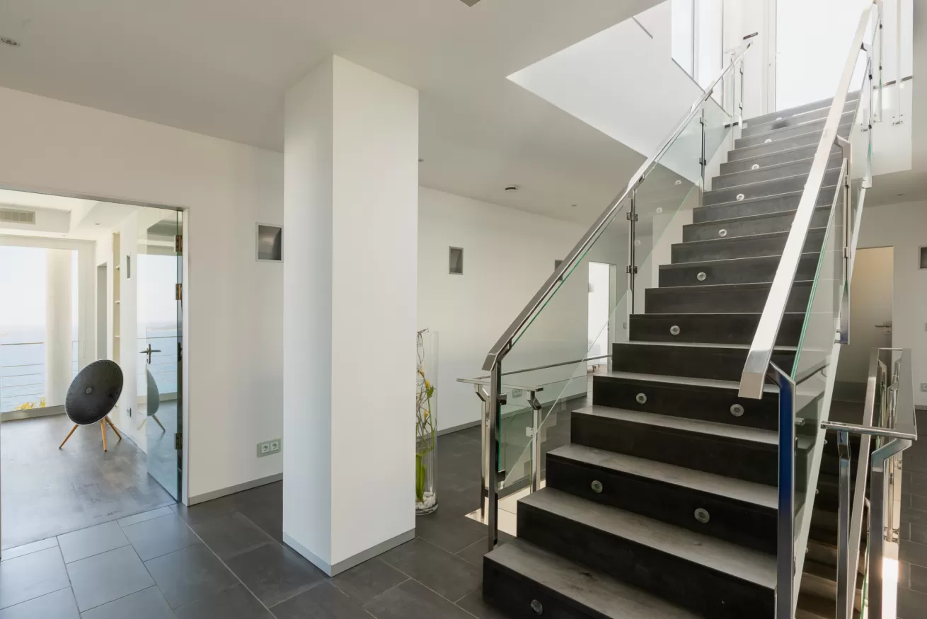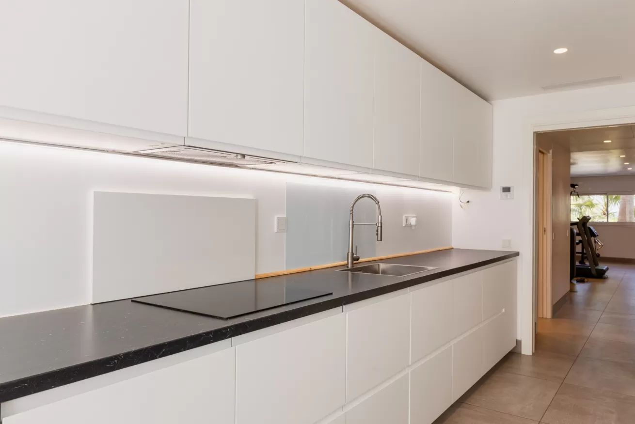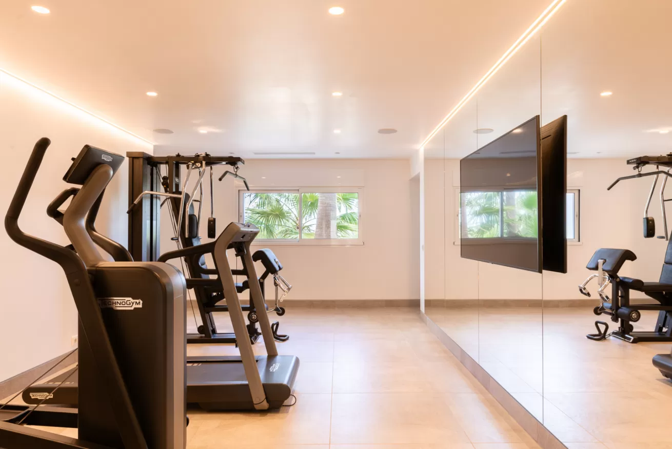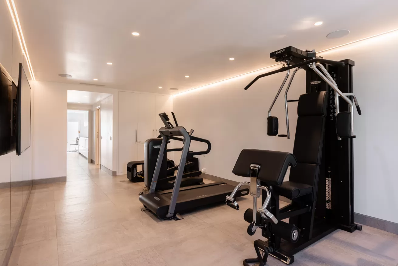 Al piano terra è inoltre possibile trovare un piccolo ufficio e un bagno di servizio, mentre al piano inferiore è possibile accedere alla palestra privata, una piccola cucina di servizio e un mini-appartamento dotato di camera da letto matrimoniale, bagno e cucina, perfetto per ospitare lo staff domestico.