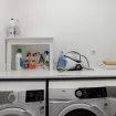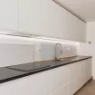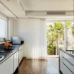 L’arredamento interno é elegante, con un salone e una cucina di alto livello. I divani bianchi si intonano alla perfezione al resto degli arredi e delle pareti, che insieme al legno del parquet creano un effetto super delicato.