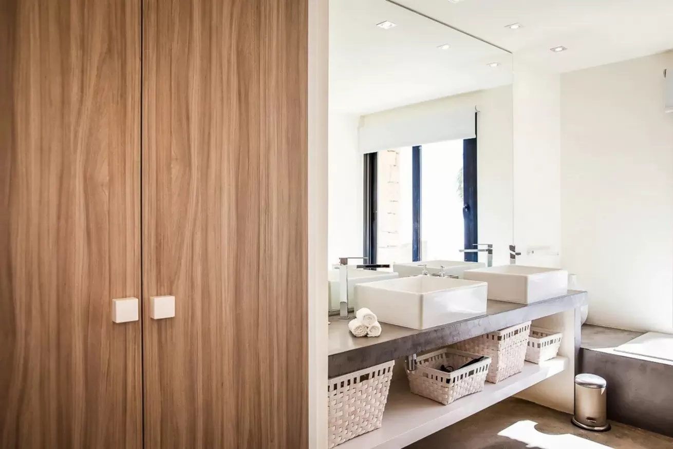 Villa Carabu è una straordinaria proprietà di lusso fronte mare situata nella rinomata zona di S’Argamassa, sulla costa nord-est di Ibiza, a pochi passi dalle acque cristalline del Mediterraneo e a breve distanza dalla cittadina di Santa Eulalia del Rio. Questa villa esclusiva unisce perfettamente il fascino autentico dello stile ibizenco con un’eleganza contemporanea e dettagli di design moderno, creando un ambiente raffinato e accogliente. Circondata da un contesto naturale unico fatto di calette tranquille, scogliere di roccia rossa e spiagge di sabbia dorata, Villa Carabu gode di una posizione privilegiata vicino al celebre Nikki Beach, al mercatino hippie di Punta Arabi e ad una vasta scelta di ristoranti, beach club e servizi locali. La proprietà, completamente rinnovata con materiali di alta qualità, si sviluppa su spazi luminosi e armoniosi. Gli interni offrono un ampio soggiorno open space con arredi eleganti, una cucina completamente attrezzata in stile moderno e quattro camere matrimoniali, tutte con bagno en suite, garantendo comfort e privacy per poter ospitare fino s 8 ospiti. Alcune camere godono di accesso diretto alla terrazza e vista mare, creando un’esperienza ancora più esclusiva. All’esterno, Villa Carabu è un vero rifugio di pace: un giardino curato con palme e ulivi circonda una splendida piscina privata dai riflessi smeraldo, mentre diverse terrazze arredate invitano al relax. La zona pranzo all’aperto con BBQ è perfetta per cene sotto le stelle, mentre il rooftop panoramico regala viste mozzafiato sul mare, ideali per ammirare sia l’alba che i magici tramonti ibizenchi. Dotata di tutti i comfort moderni, tra cui aria condizionata, Wi-Fi, sistema di sicurezza, parcheggio privato e accesso recintato, la villa offre anche dettagli esclusivi come ampie vetrate scorrevoli che fondono gli spazi interni con quelli esterni, creando un’atmosfera luminosa e sofisticata. Grazie alla sua posizione centrale ma riservata, alla vicinanza al porto turistico, alle attività nautiche e ai migliori servizi dell’isola, Villa Carabu rappresenta la scelta ideale per famiglie e gruppi che desiderano vivere un soggiorno indimenticabile in un autentico angolo di paradiso a Ibiza.