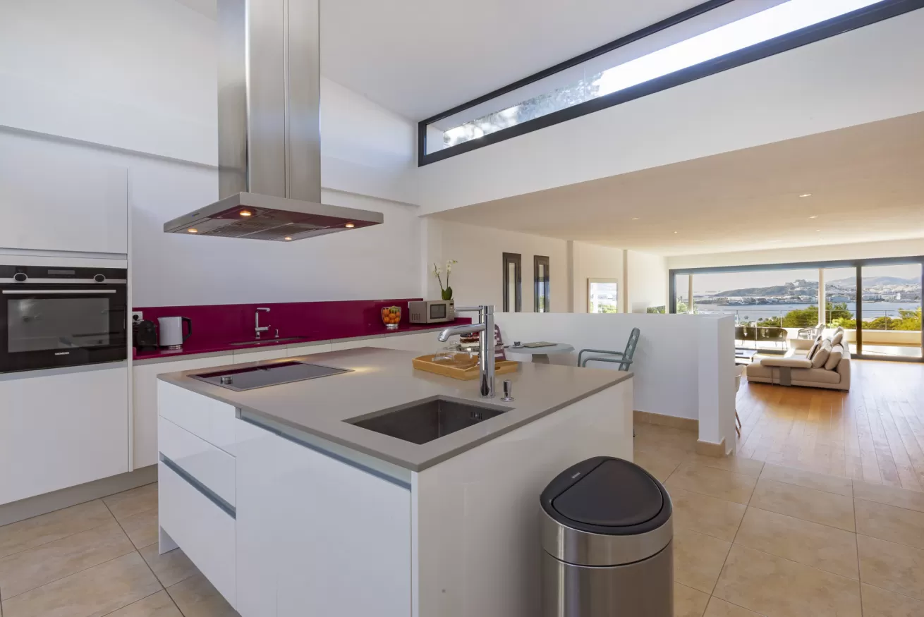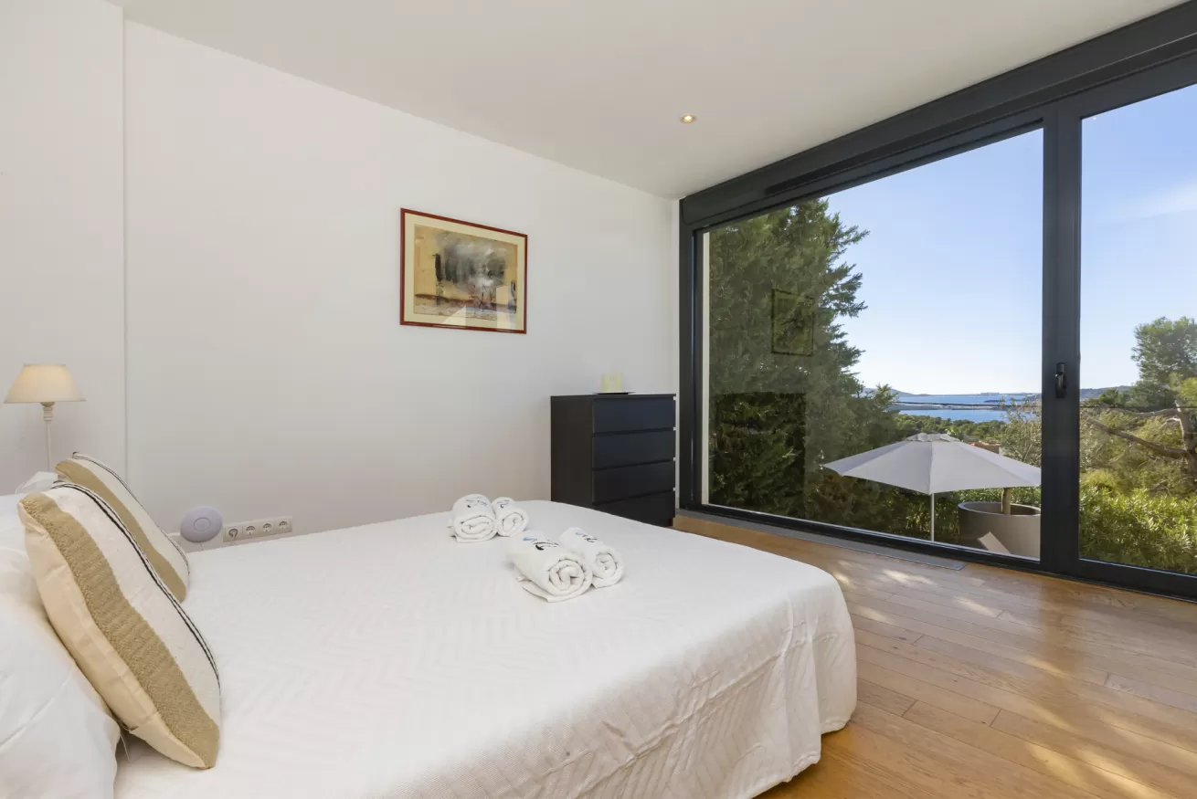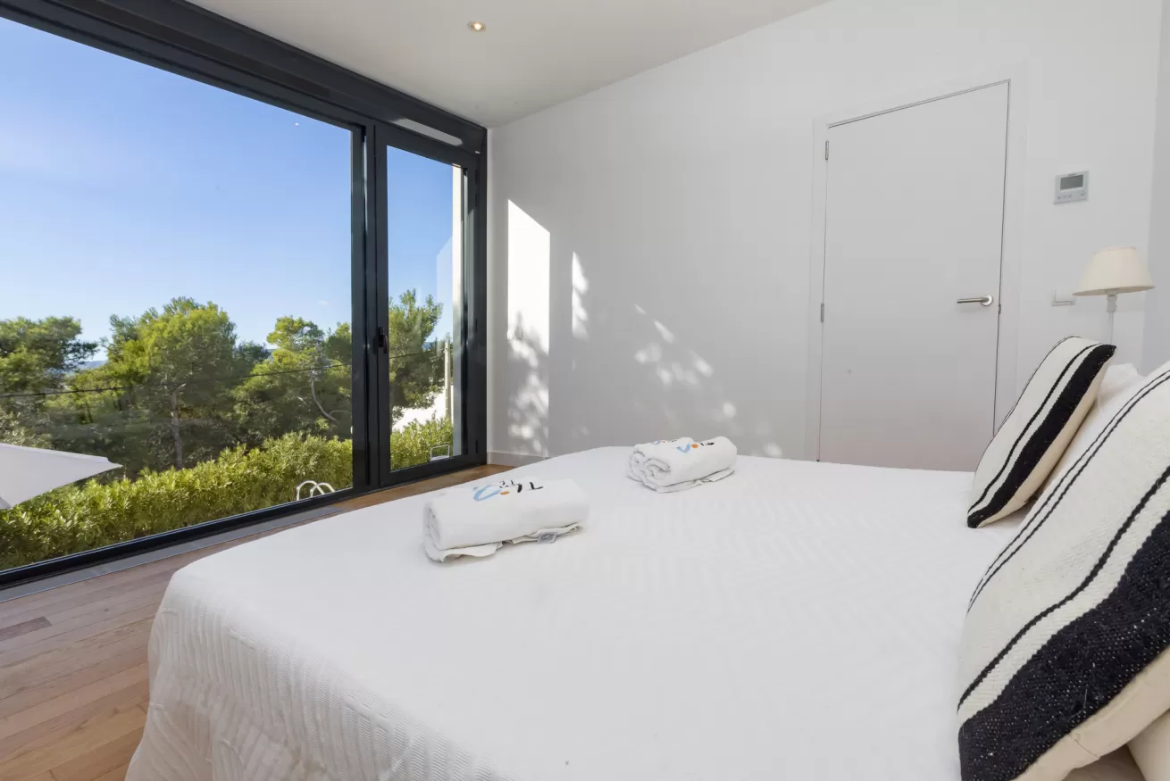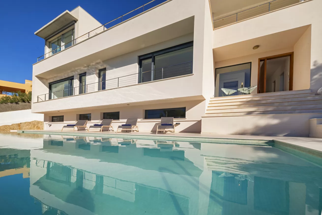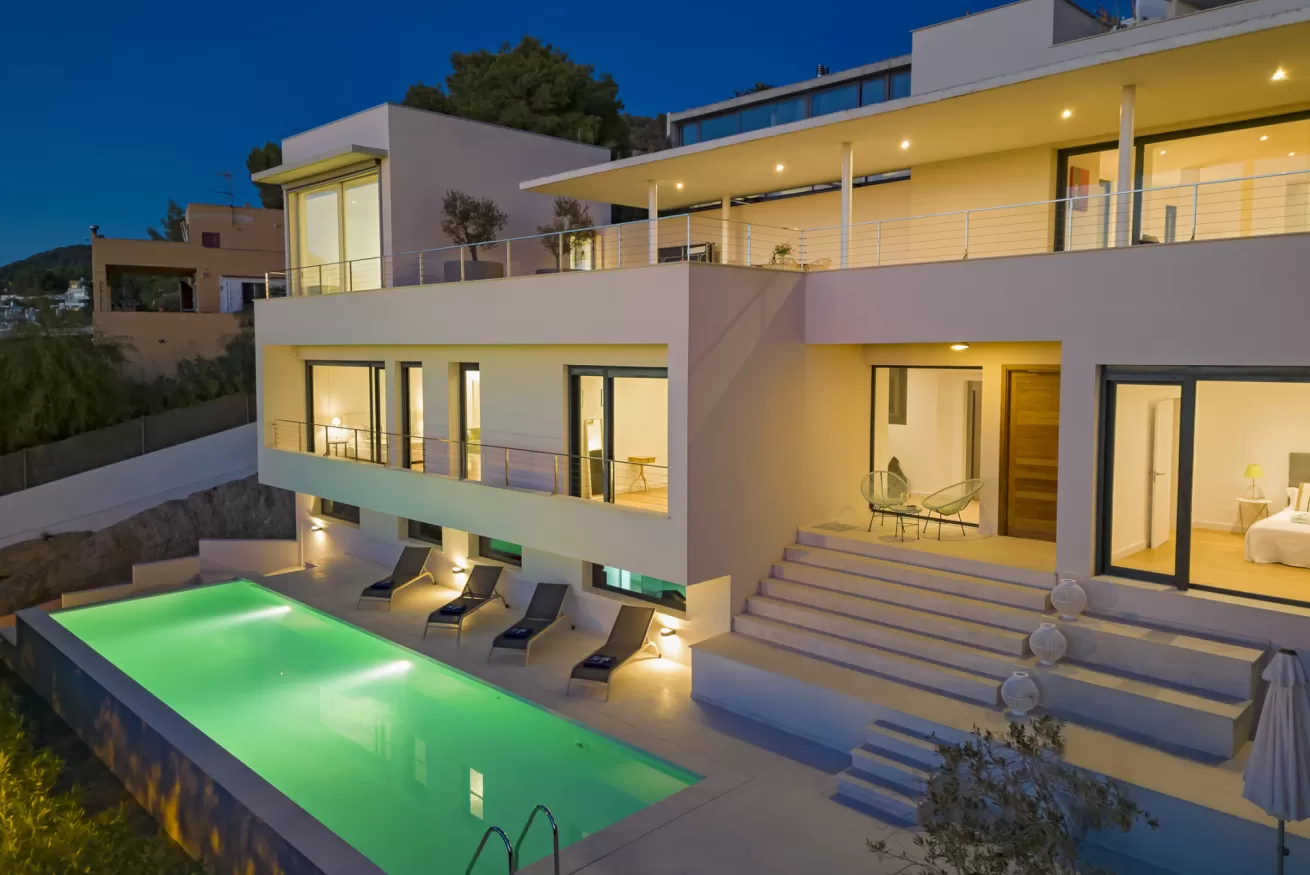 Villa Helga è una spettacolare villa di lusso contemporanea arroccata su una collina esposta a sud-ovest, che regala alcune delle migliori viste panoramiche di Ibiza: dalla baia di Talamanca alla storica Dalt Vila, fino al mare aperto e all’isola di Formentera. Situata a pochi minuti dal paesino di Jesus e a una decina di minuti dalla città di Ibiza, questa proprietà combina perfettamente comfort e accesso immediato alla vivace vita dell’isola. Distribuita su tre livelli e collegata da una scenografica scala in rovere oltre ad un comodo ascensore, Villa Helga è progettata per offrire un’esperienza di soggiorno esclusiva. La villa dispone di cinque camere da letto eleganti, tre delle quali con bagno en-suite, oltre a un ampio bagno condiviso. Tutti gli ambienti sono dotati di aria condizionata e sistema di climatizzazione a pavimento regolabile individualmente, per garantire il massimo comfort in ogni stagione. Gli interni luminosi e moderni sono pensati per valorizzare la vista mozzafiato. Il grande spazio open space che unisce cucina, sala da pranzo e soggiorno crea un ambiente raffinato e conviviale, perfetto per intrattenere amici e familiari. Le grandi vetrate permettono alla luce naturale di inondare la casa, mantenendo sempre lo sguardo rivolto verso il panorama. All’esterno, una splendida piscina privata di 13 x 3,5 metri riflette la luce del sole e invita a rinfrescanti tuffi nelle calde giornate estive. Attorno alla piscina, comodi lettini prendisole offrono lo spazio ideale per rilassarsi, praticare yoga all’aria aperta o semplicemente godersi la tranquillità del paesaggio mediterraneo. Il piano superiore ospita una magnifica terrazza panoramica di 110 m², esposta a sud, con zona pranzo all’aperto perfetta per lunghe cene al tramonto mentre il sole cala dietro Dalt Vila. Ovunque ci si trovi, lo sguardo viene inevitabilmente catturato dalla vista spettacolare sul mare e sull’isola di Formentera. La villa dispone inoltre di garage coperto per due auto, parcheggio aggiuntivo nel vialetto e spazi dedicati allo staff, offrendo così comfort e praticità per soggiorni senza pensieri. Grazie alla sua posizione privilegiata, Villa Helga si trova a breve distanza da Clap, FIVE Destino, Sa Punta, la spiaggia di Talamanca e Marina Botafoch, nonché da negozi, ristoranti, bar iconici e alcune delle spiagge più belle dell’isola. Che tu voglia esplorare la vibrante vita notturna di Ibiza o semplicemente rilassarti in un ambiente esclusivo, questa villa rappresenta la base perfetta per vivere l’isola con stile. La proprietà si trova in una zona residenziale tranquilla; chiediamo pertanto agli ospiti di rispettare i vicini e di attenersi al rispetto e buone norme di convivenza con vicinato esclusivo. Eventuali segnalazioni o interventi da parte dei vicini o delle autorità potrebbero comportare la perdita parziale o totale del deposito cauzionale.