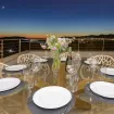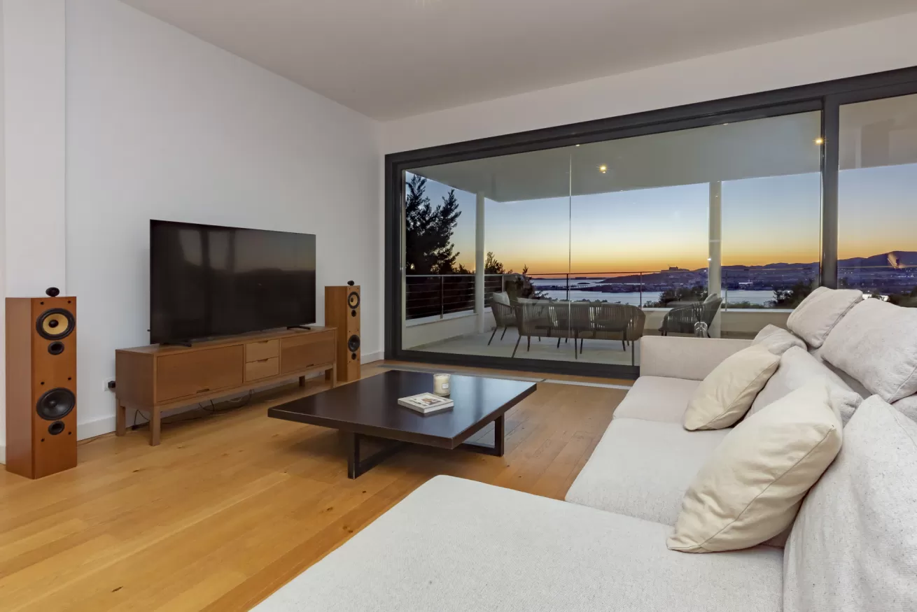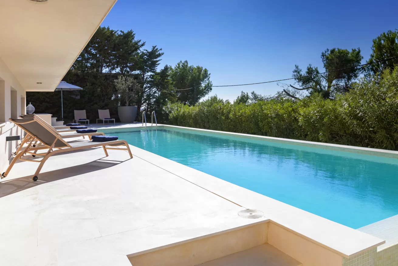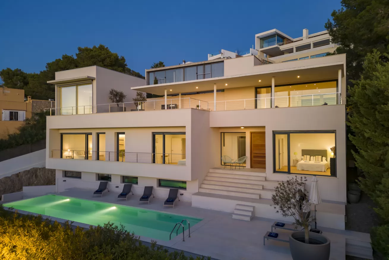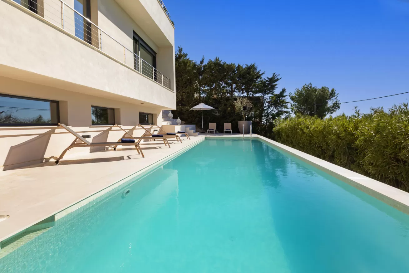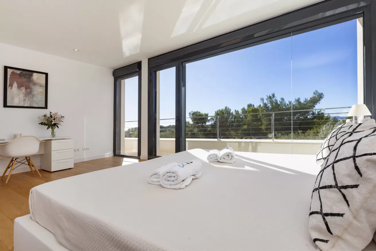 Villa Helga è una spettacolare villa di lusso contemporanea arroccata su una collina esposta a sud-ovest, che regala alcune delle migliori viste panoramiche di Ibiza: dalla baia di Talamanca alla storica Dalt Vila, fino al mare aperto e all’isola di Formentera. Situata a pochi minuti dal paesino di Jesus e a una decina di minuti dalla città di Ibiza, questa proprietà combina perfettamente comfort e accesso immediato alla vivace vita dell’isola. Distribuita su tre livelli e collegata da una scenografica scala in rovere oltre ad un comodo ascensore, Villa Helga è progettata per offrire un’esperienza di soggiorno esclusiva. La villa dispone di cinque camere da letto eleganti, tre delle quali con bagno en-suite, oltre a un ampio bagno condiviso. Tutti gli ambienti sono dotati di aria condizionata e sistema di climatizzazione a pavimento regolabile individualmente, per garantire il massimo comfort in ogni stagione. Gli interni luminosi e moderni sono pensati per valorizzare la vista mozzafiato. Il grande spazio open space che unisce cucina, sala da pranzo e soggiorno crea un ambiente raffinato e conviviale, perfetto per intrattenere amici e familiari. Le grandi vetrate permettono alla luce naturale di inondare la casa, mantenendo sempre lo sguardo rivolto verso il panorama. All’esterno, una splendida piscina privata di 13 x 3,5 metri riflette la luce del sole e invita a rinfrescanti tuffi nelle calde giornate estive. Attorno alla piscina, comodi lettini prendisole offrono lo spazio ideale per rilassarsi, praticare yoga all’aria aperta o semplicemente godersi la tranquillità del paesaggio mediterraneo. Il piano superiore ospita una magnifica terrazza panoramica di 110 m², esposta a sud, con zona pranzo all’aperto perfetta per lunghe cene al tramonto mentre il sole cala dietro Dalt Vila. Ovunque ci si trovi, lo sguardo viene inevitabilmente catturato dalla vista spettacolare sul mare e sull’isola di Formentera. La villa dispone inoltre di garage coperto per due auto, parcheggio aggiuntivo nel vialetto e spazi dedicati allo staff, offrendo così comfort e praticità per soggiorni senza pensieri. Grazie alla sua posizione privilegiata, Villa Helga si trova a breve distanza da Clap, FIVE Destino, Sa Punta, la spiaggia di Talamanca e Marina Botafoch, nonché da negozi, ristoranti, bar iconici e alcune delle spiagge più belle dell’isola. Che tu voglia esplorare la vibrante vita notturna di Ibiza o semplicemente rilassarti in un ambiente esclusivo, questa villa rappresenta la base perfetta per vivere l’isola con stile. La proprietà si trova in una zona residenziale tranquilla; chiediamo pertanto agli ospiti di rispettare i vicini e di attenersi al rispetto e buone norme di convivenza con vicinato esclusivo. Eventuali segnalazioni o interventi da parte dei vicini o delle autorità potrebbero comportare la perdita parziale o totale del deposito cauzionale.
