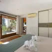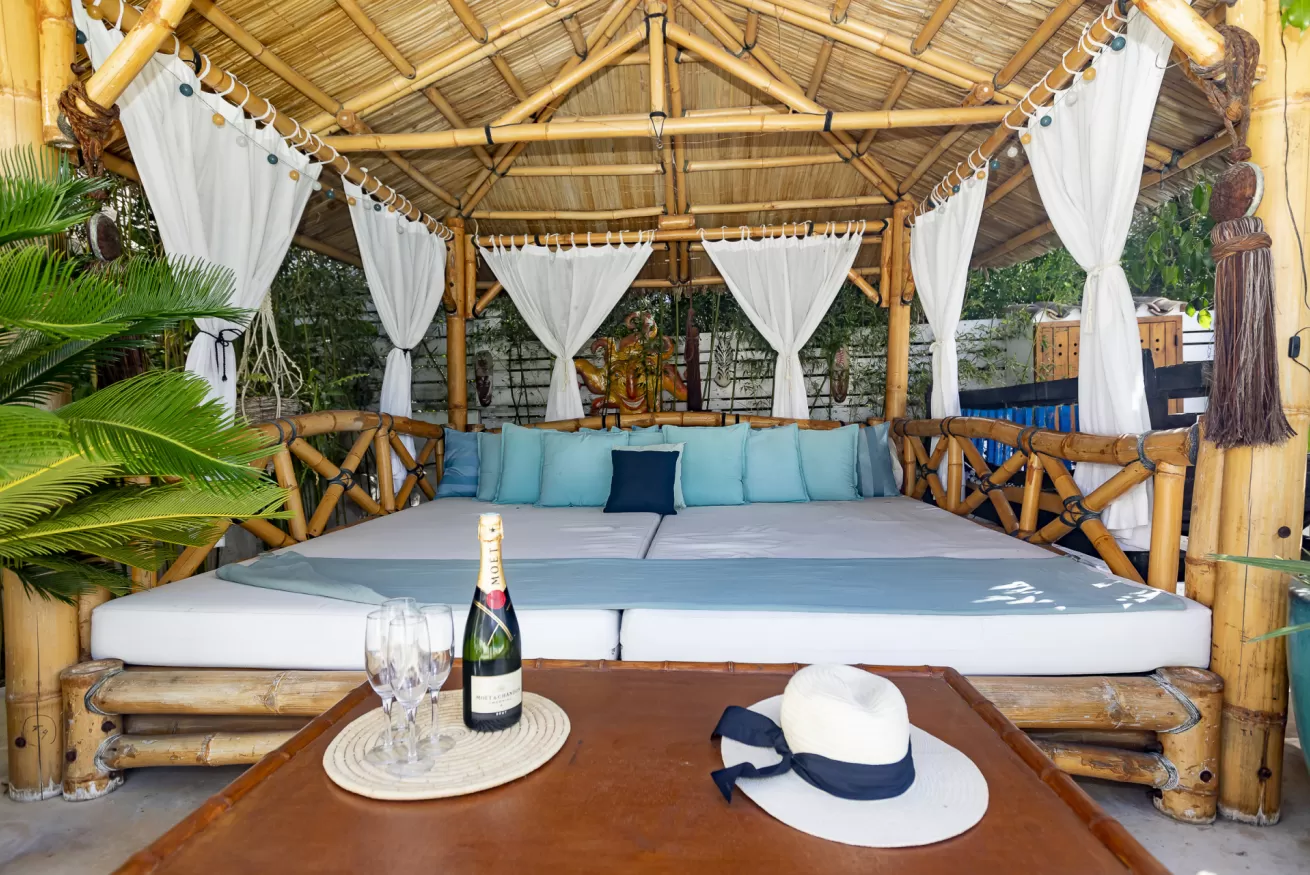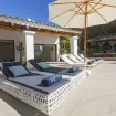 All’esterno, Villa Jasmine conquista con spazi pensati per la convivialità e il relax: una grande tavolata in legno in stile thai per cene sotto le stelle, area barbecue con lavello e piano di lavoro, numerose zone lounge e una suggestivo letto in stile balinese. La piscina privata rappresenta il cuore della proprietà, affiancata da lettini prendisole e da un’accogliente area fire fit perfetta per aperitivi al tramonto.
