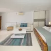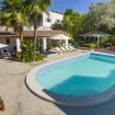 La dependance, con accessi indipendenti affacciati sulla piscina attraverso eleganti porte in vetro, ospita altre due spaziose camere matrimoniali, entrambe con bagno privato e area living. Una delle due è concepita come un vero e proprio appartamento autonomo, completo di angolo cottura, zona relax e tutti i comfort necessari.