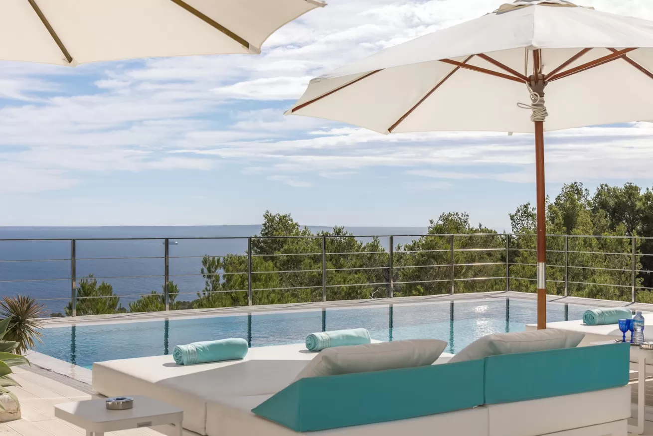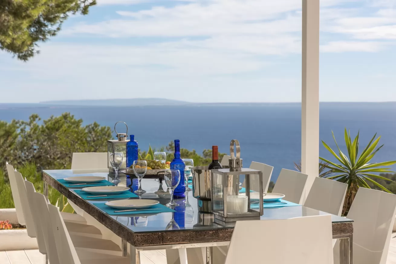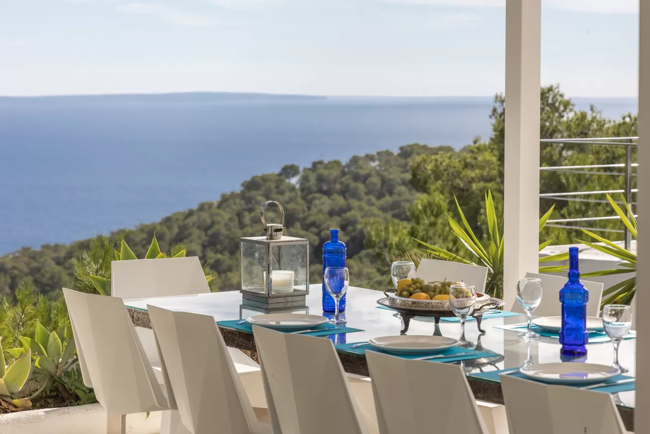 Its privileged location offers truly breathtaking panoramic sea views, with direct outlooks towards Porroig, Cala Jondal, and Formentera.