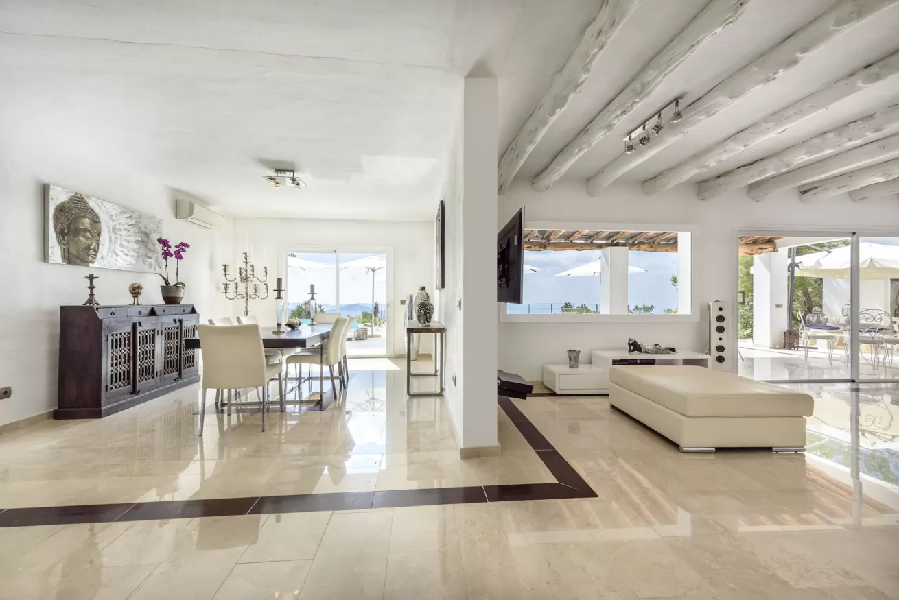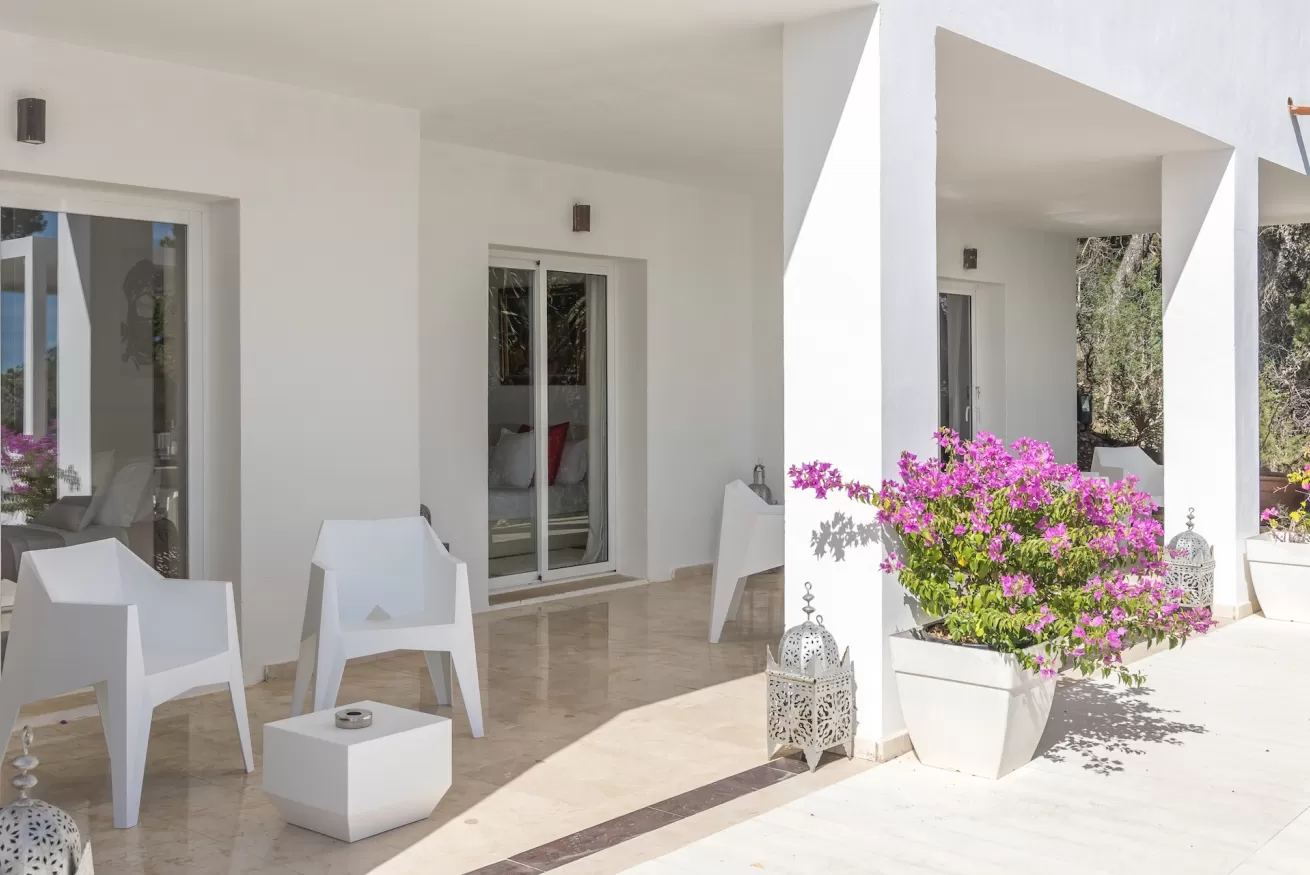 Its location is ideal for exploring the island: just 10 minutes from Cala Jondal, 15 minutes from the airport, and 20 minutes from Ibiza Town, as well as being very close to excellent restaurants and beaches.