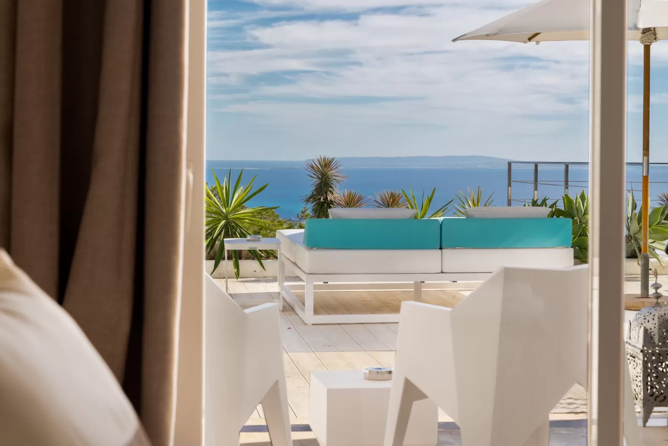 Villa Raz Mari is a spectacular 5-star villa with 6 bedrooms and 6 bathrooms, ideal for accommodating up to 12 guests, located on the heights of Es Cubells in the south of the island.